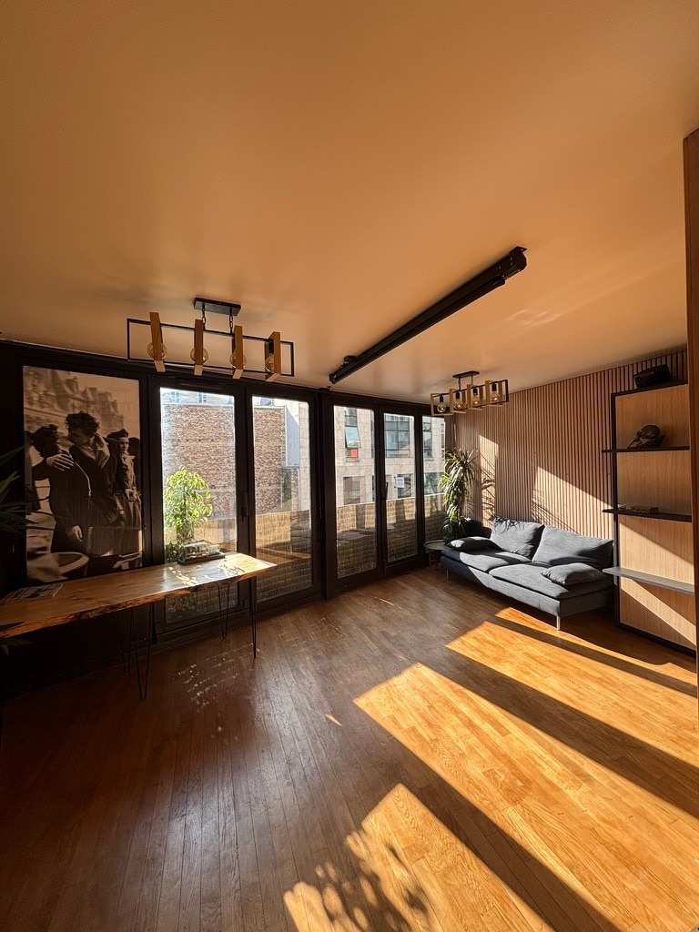 Paris damlarının, Eyfel qülləsinin və bütün abidələrin üstündə panoramik mənzərələri olan terras bağında talvar. Parisdə nadir hallarda rast gəlinən kondisioner də daxil olmaqla bütün qarışıqlıqlarla düzdür. Subway ligne 9 (Station Voltaire) Eyfel qülləsi, Champs Elysées, Paris Opera Garnier, Galeries Lafayettes.... Le Marais və Bastiliyaya gəzinti məsafəsi. Ərazi bir çox yeni dəbli "bistronomik restoran" və yeni muséums ilə sürətli gentrifikasiya prosesindədir.