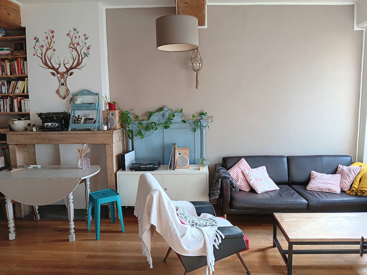4 nəfərlik mənzil, 50m2 böyük T2 Vieux-Lyon yaxınlığında, sakit bir ərazidə, funikulyorun yanında, Lionu piyada kəşf etmək üçün idealdır. Köhnənin cazibəsini saxlayaraq yenilənmiş, özünüzü evdəki kimi hiss etməyiniz üçün lazım olan bütün avadanlıqları tapın. Avtomobillə (küçədə pulsuz ictimai yerlər) və ya ictimai nəqliyyatla (funikulyor, avtobus, metro) əlçatan ola bilər. Muxtar gəliş və gediş açar qutusu ilə.