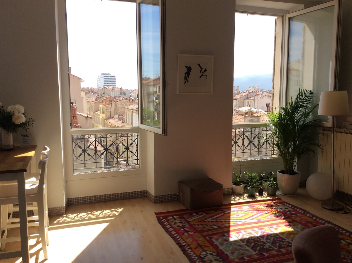 Bu məkan tamamilə yenilənmiş və parlaq şəkildə yerləşir. Sen Çarlz qatar stansiyasından və Köhnə Limandan 15 dəqiqəlik məsafədəsiniz, Place Jean Jaurès Cours Julien-dən 100 metrdən az məsafədədir, Stade Vélodrome və çimərliklərdən 5 dəqiqəlik məsafədədir. Avtobus,Metro və Tramvay piyada 5 dəq məsafədədir Yerli mağazaları olan Marseillais binasının 4-cü mərtəbəsində qalırsınız. Marsel şəhərinin və dənizin geniş balkondan aydın mənzərəsi.