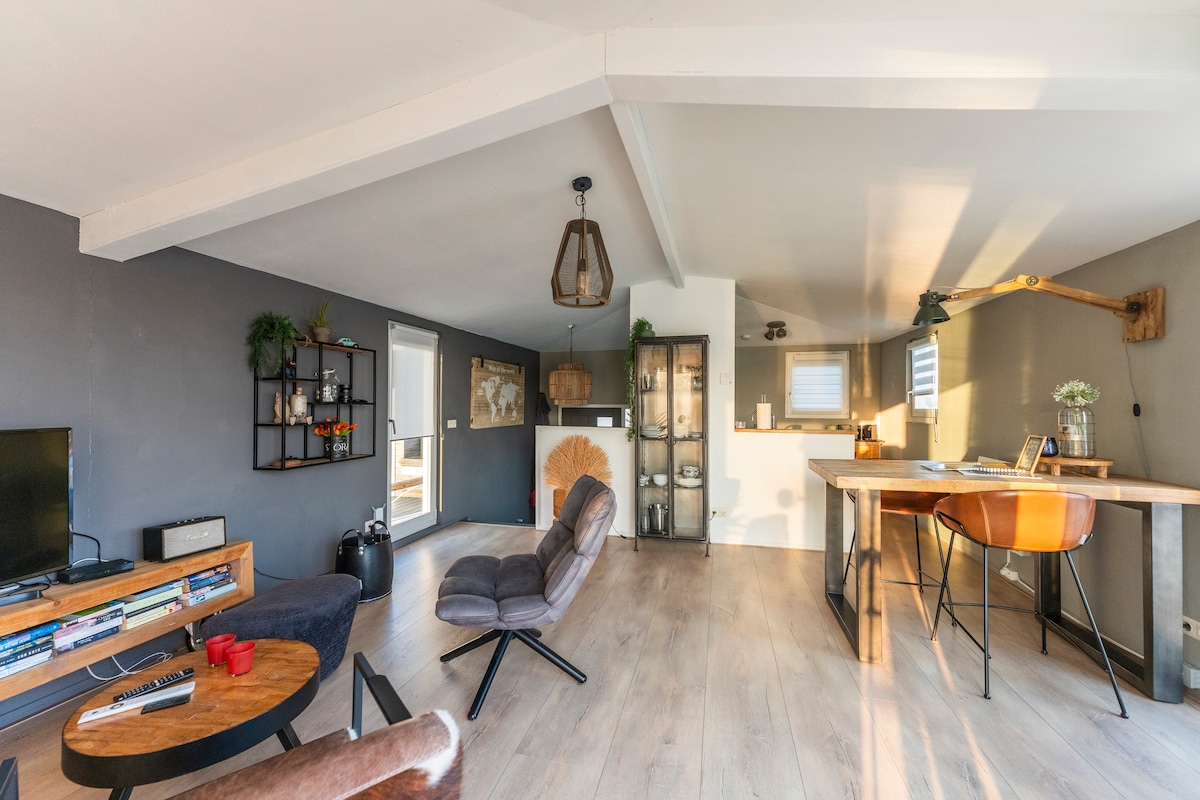 Dəbli dekorasiyalı bu cazibədar və rahat yaşayış yeri Amsterdam, Rotterdam, Haaqa, Leiden və çimərlik arasında mərkəzi mövqedə yerləşir. Hər yerə avtomobillə 30 dəqiqəlik məsafədədir. Ayrıca giriş var. Birinci mərtəbədən içəri daxil olursunuz. Burada ayrıca tualet, ayrıca hamam otağı və paltaryuyan maşın var. Üst mərtəbədə iki otaq, düz ekranlı televizoru (Netflix və YouTube) olan yataq otağı, səhər yeməyi/iş otağı və qarderob var. Dəhlizdə soba/mikrodalğalı soba, Nespresso maşını, çaydan və soyuducu var.