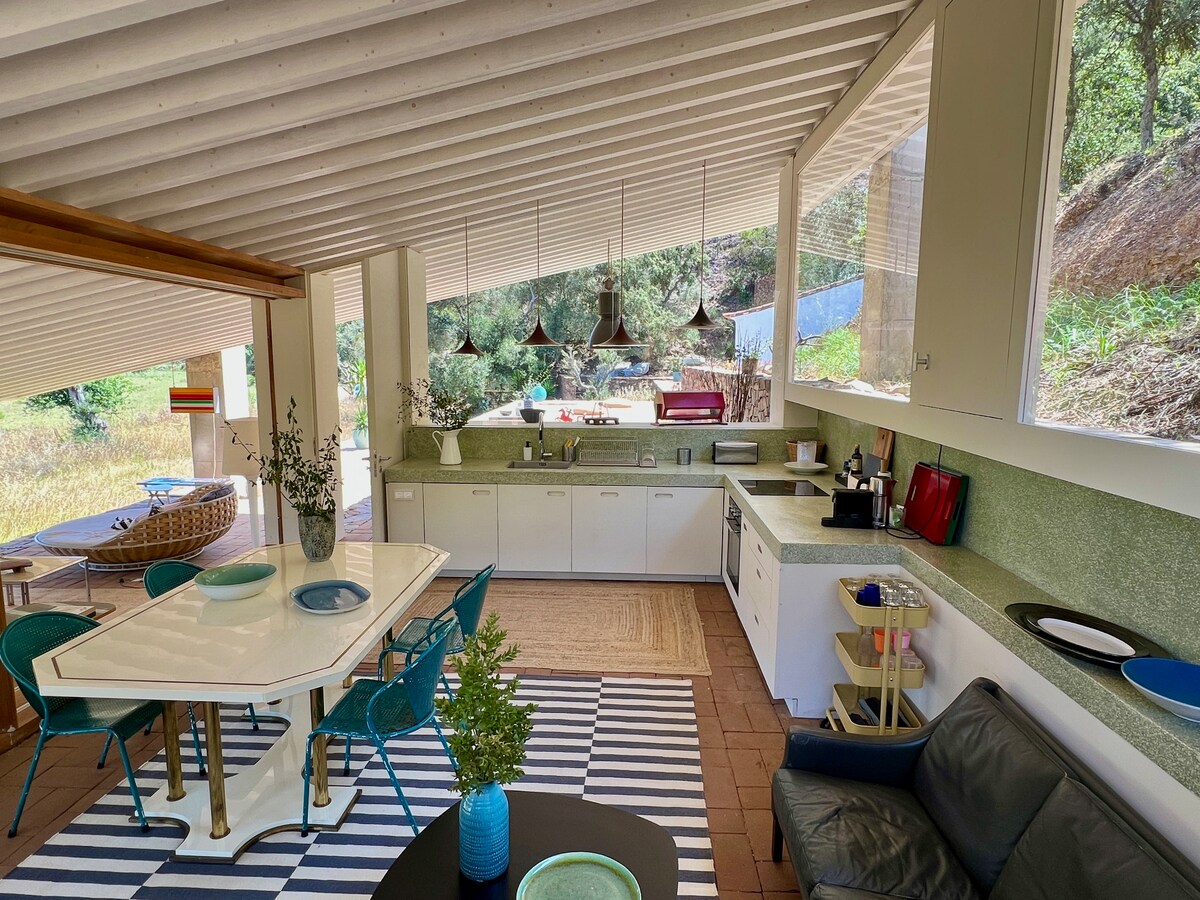 Bu sakit, dəbli məkanda dincəlin və dincəlin. Böyük şüşə sürgülü qapıları Alentejo təbiətinin mənzərələri ilə əhatə olunmuş qapalı yaşayış məkanlarından, təbii işıq yüklərindən zövq alır. Sonsuzluq hovuzuna dalın, günəş işığından zövq alın və aydın gecə səmasındakı ulduzlara baxın. Ev 9 hektar ərazidə, Santyaqo do Kakemdəki supermarketlərdən 12 dəqiqəlik məsafədə, çimərliklərə 30 dəqiqəlik məsafədə və ya kiçik qəribə dənizkənarı şəhər olan Porto Covo şəhərinə 40 dəqiqəlik məsafədə yerləşir.
