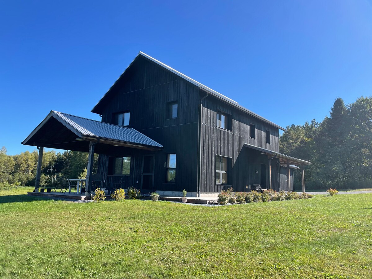 This newly built house is located on our 90 acre property. It is surrounded by an orchard, a vineyard and forest. The quaint and natural setting is perfect for couples, solo travellers or families. Cross country skiing, running and hiking can be practiced on the property. Bromont and Sutton downhill ski slopes are a 35 minutes drive away. Jay Peak, Vermont is 1h15 away by car. The surrounding country roads provide for wonderful bike rides.