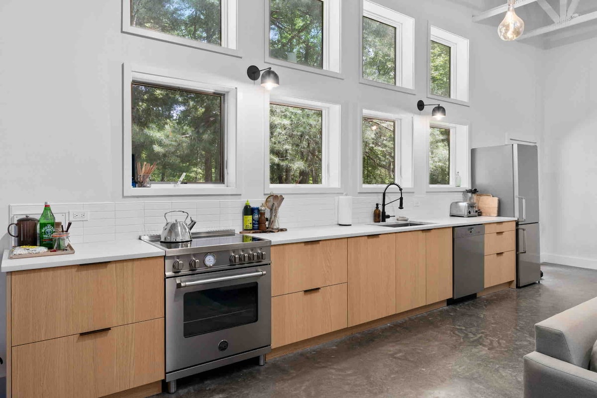 2 yataq otağı və rahat loftu olan müasir üçbucaqlı evdə meşə mənzərələri ilə oyanın. Yaxınlıqdakı cığırlarda gəzintiyə çıxın, sidr ağacından hazırlanmış cakuzidə çimməkdən və ya yerli pivə zavodlarını ziyarət etməkdən zövq alın. Yayda barbekü və ya ocaq başında toplaşın; qışda 2 hektarlıq Katskill əmlakında odun sobasının yanında isinin. Qeyd: Qonaqların 13 yaşı tamam olmalı və bütün yeniyetmələr rezervasiyada qeyd edilməlidir. Ev heyvanları əvvəlcədən təsdiq, ev heyvanı qaydaları ilə razılaşma və ev heyvanı haqqının ödənilməsi ilə qəbul edilir. Bron etməzdən əvvəl ev sahibi ilə əlaqə saxlayın.