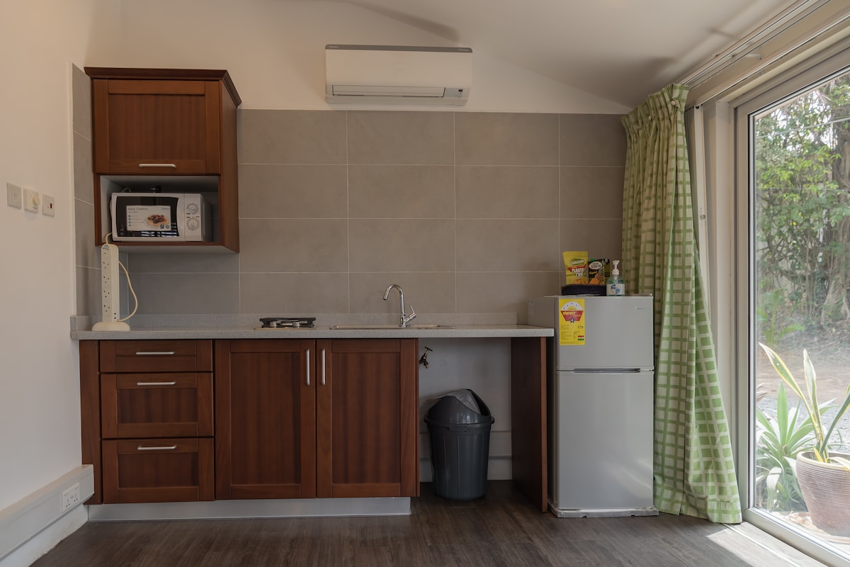 Akkranın ən təhlükəsiz və arzuolunan məhəllələrindən biri olan Kantonmentsdəki ayrıca 1 otaqlı qonaq evinizə xoş gəlmisiniz. Bu müasir istirahət məkanı kraliça çarpayısı olan işıqlı yataq otağı, ağıllı televizoru olan rahat yaşayış sahəsi, isti suyu olan parlaq hamam otağı və tam təchiz olunmuş balaca mətbəx təklif edir. Kondisioner, etibarlı yüksək sürətli Wi-Fi və 24/7 təhlükəsizlik ilə həm rahatlıq, həm də komfortdan zövq alacaqsınız. Səfirliklərdən, restoranlardan, ticarət mərkəzlərindən və Kotoka Hava Limanından cəmi bir neçə dəqiqə.