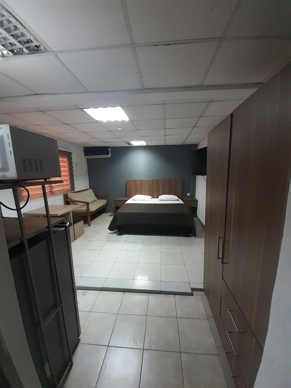 Keep it simple at this recently refurbished,sparkling clean and centrally-located place only 4mins away from Kotoka International Airport (KIA). The studio comes with: - Free & Fast Wifi (> 60Mbps) - Smart TV with Netflix & DSTV - A large comfy bed; fits 2 adults. - Exclusive access to rooftop pool -In-unit washer/Dryer - Free parking - Onsite Gym & Cafeteria - Private balcony with garden view - 24 hours security and CCTV - Personalized fingerprint security access to The Lennox development.