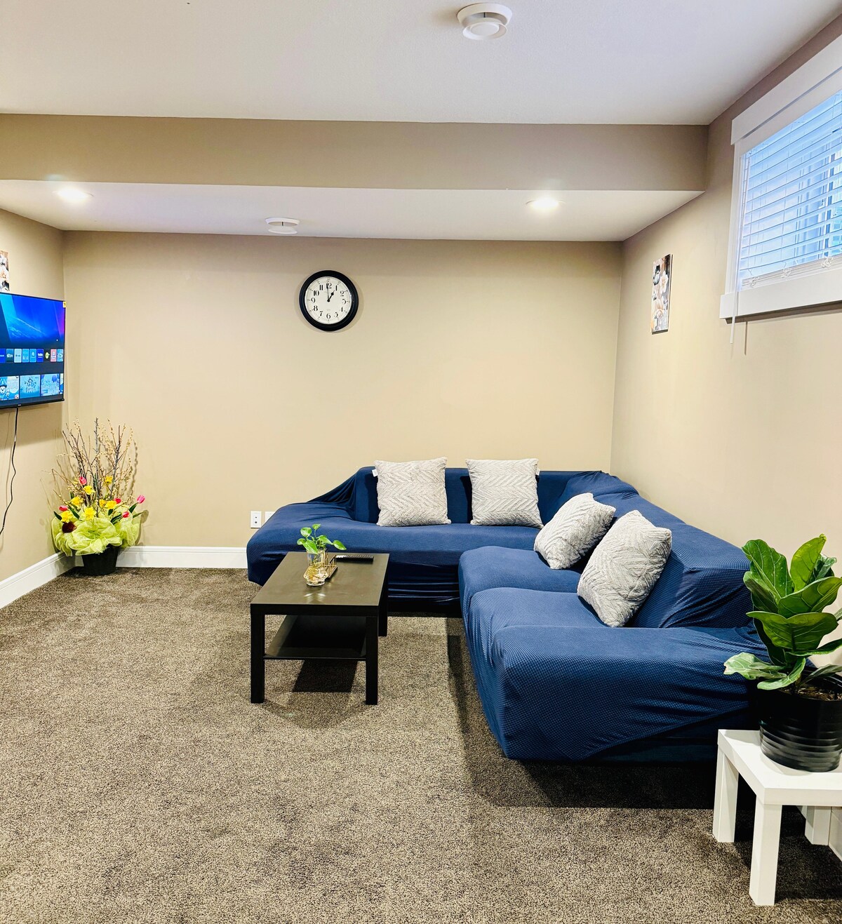 🏡 Əsas Xüsusiyyətlər ✔️ Parlaq, qüsursuz qanuni zirzəmi süitası 150-179 sm-lik çarpayıları və otel üslubunda döşəkağıları olan ✔️ 2 yataq otağı ✔️ Yalnız 5-ci qonaq üçün yapon üslublu futon – əlavə istifadə sorğu ilə Südlü ✔️ mətbəx Keurig qəhvə maşını 58" Ağıllı TV ✔️Dəbli qapalı asma stulu olan✔️ rahat qonaq otağı ✔️ Xüsusi giriş və asan öz-özünə giriş Küçədə ✔️ pulsuz parkinq və ya avtomobil yolu yeri 📍 Yaxınlıqda ✔️ Ticarət mərkəzinə 2 dəqiqəlik məsafədə ✔️ Dovşan Təpəsi Xizək Kurortuna 15 dəqiqəlik məsafədə ✔️ YEG-yə 20 dəqiqəlik məsafə ✔️ WEM-ə 20 dəqiqəlik məsafə