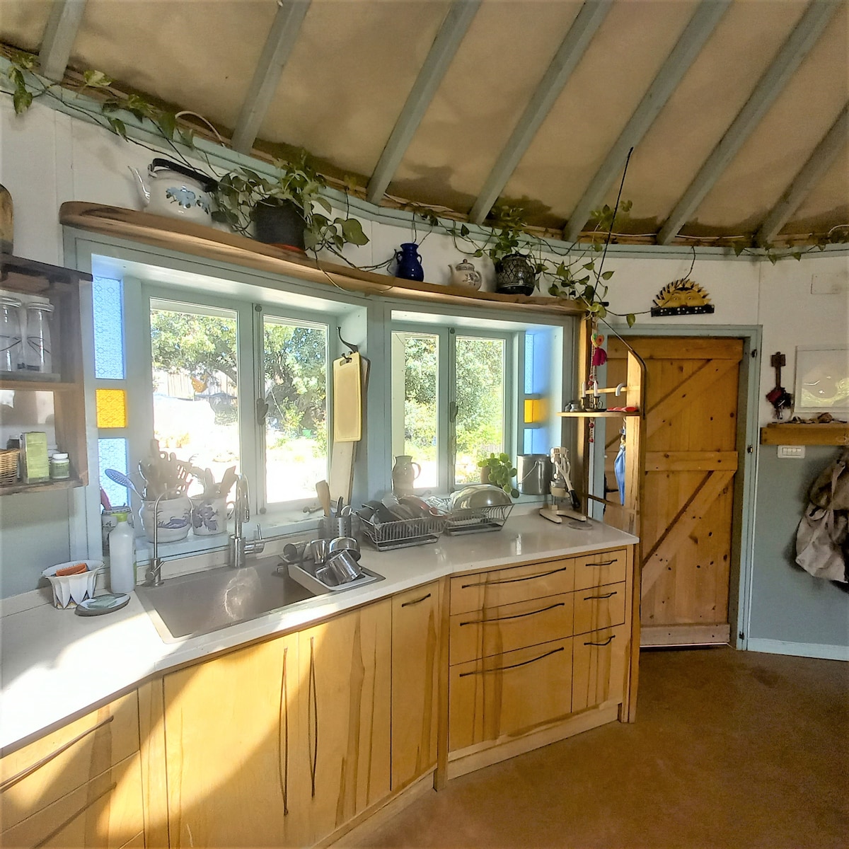 Möhtəşəm dəniz mənzərəsi və qədim keçiüzümü ağacının kölgəsində bağçası olan dairəvi ev. Ev rahat mövqedə yerləşir, geniş və yaxşı təchiz olunub, Nahal Yehiam təbiət qoruğuna yaxındır və kənd mərkəzinə piyada məsafədədir. Ev çimərlikdən avtomobillə 12 dəqiqə məsafədədir və Qalileyanın qərbindəki gözəl gəzinti yollarına və təbiət qoruqlarına yaxındır.