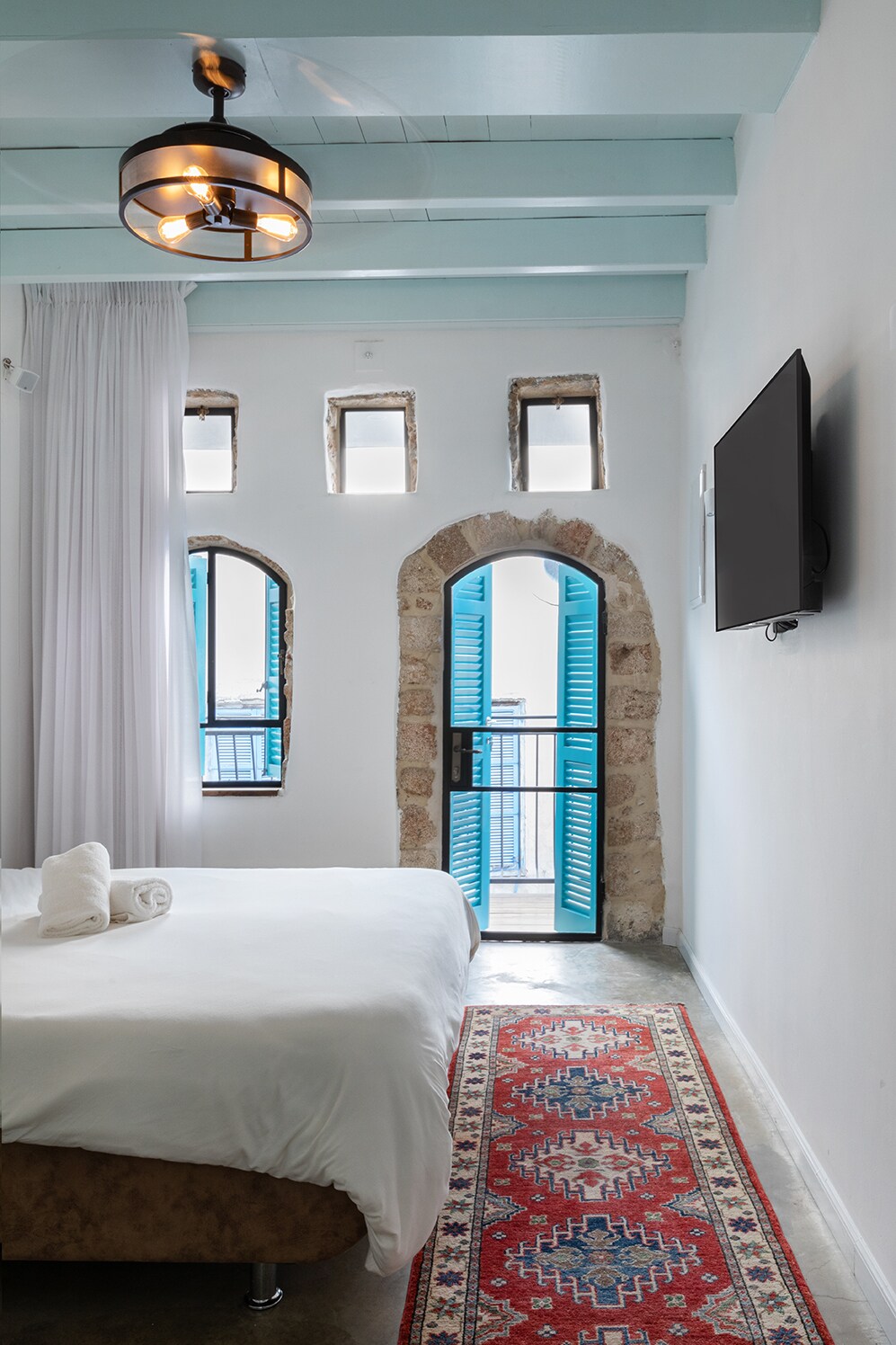 In the hart of the old city of Acre, romantic apartment, designed and beautiful. Features a kitchen equipped, coffee machine, with a luxurious holandia tempur bed, high level of bed linen and towels , a high quality stereo, cable TV and an Authentic balcony. Our suite has a shazlia view from the balcony. Israeli citizens must pay VAT 17%. locaten on first floor with staires.