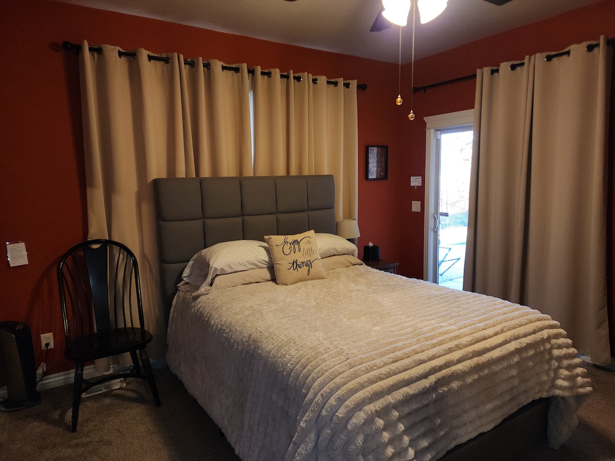 Zirzəmi mənzilinə xoş gəlmisiniz! Ölkə hissi - hava limanına və şəhərə asan çıxışı olan hər şeyi bağlayın. Xüsusi giriş və Wi-Fi! Təmiz və Rahat! 2 çarpayıda (King & Double), 1 yataq otağında 1-3 yatır. 1- vanna otağı/ duş. Mətbəx (soba, kiçik soyuducu və çanaq). 100% veyp və tüstüdən azaddır. Açıq havada ayrıca veranda sahəsi. Netflix, Prime və s. Filmləri yayımlayın Şəxsi meydançamızda turşu-pəncərə oynayın, gölməçəmizə baxın və bir neçə vəhşi ördək və qaza baxın. Qonşumuzun səslərinə yatmaq üçün gedin 🐸