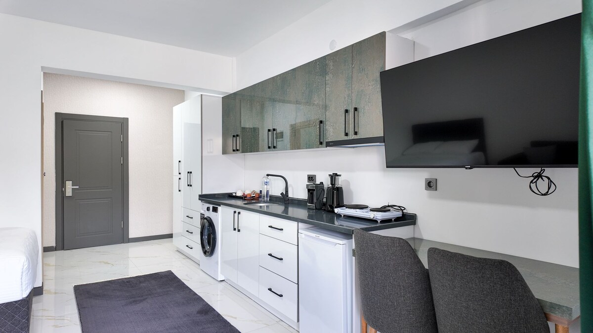 Unwind, Relax, and work in your space at New Inn. Experience a chic 2-bedroom flat in a beautiful central residence. This chic retreat combines comfort and style, With Sabanca Lake just a short drive away, immerse yourself in natural beauty.Our property is classified as a ‘Tourism Operation Licensed / Apart Hotel.’ This listing is for an individual apartment unit within the apart hotel.NewInn Hotel Cadde 54 Mall 2+1, Belge No: 25907 – Turizm İşletme Belgeli Tesis