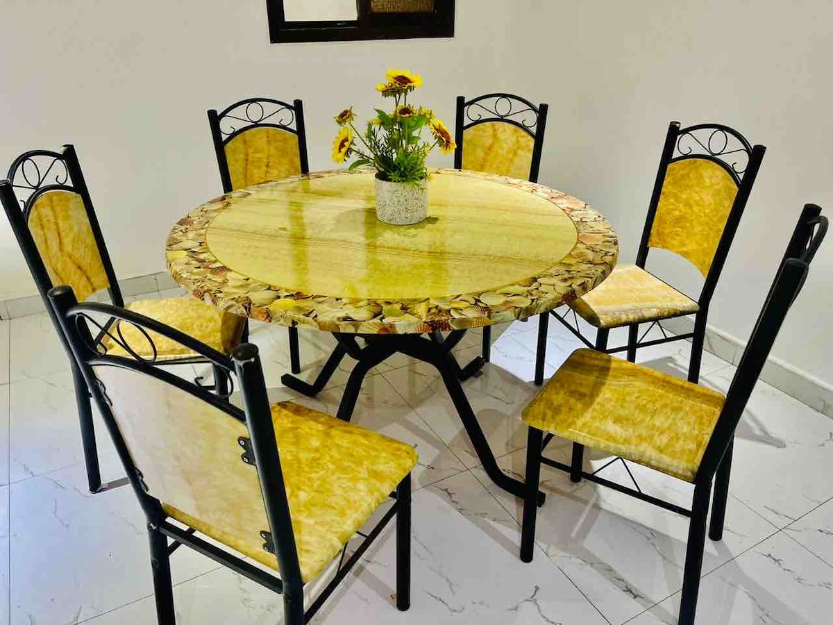 Bu mənzil 2-4 nəfərlik qrup üçün idealdır. Bura Şərqi Leqon -Adjiringanor bölgəsində yerləşir. Bura Bacarıq Meydanından və ya Ulduz Neft Filtrləmə stansiyasından təxminən 2 dəqiqəlik məsafədədir və Kotoka Beynəlxalq Hava Limanından təxminən 25 dəqiqəlik məsafədədir. Bu qurğu birinci mərtəbədə yerləşir. Binanın 24 saat təhlükəsizliyi, CCTV və generatorun dayağı var. Pulsuz WIFI mövcuddur. Qonaq gündə 10 Gigabits məlumat almaq hüququna malikdir. Hər əlavə Gigabit üçün əlavə xərc üçün əlavə məlumat istənilə bilər.