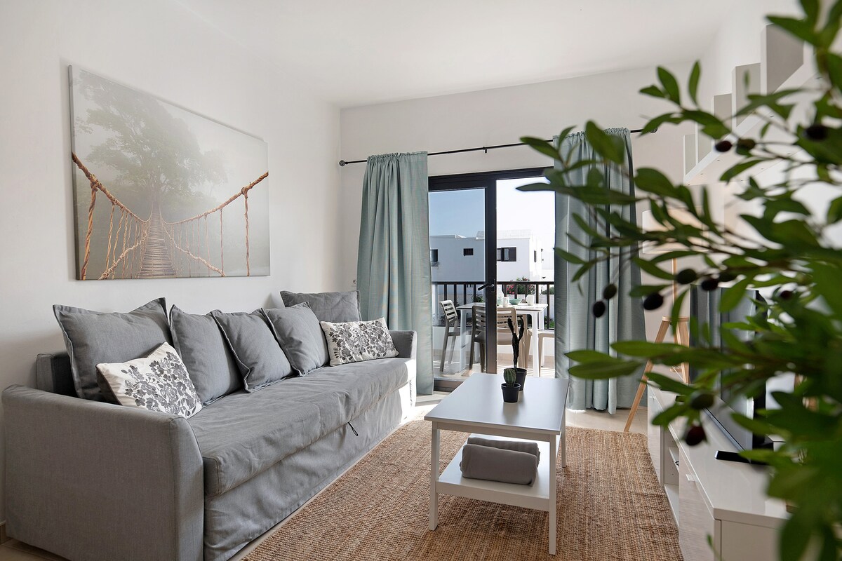 Apartamento de 2 dormitorios, luminoso y soleado a pocos pasos de la playa y paseo marítimo. Bien equipado para disfrutar de unas vacaciones y descansar descubriendo nuestra increíble y fascinante isla de Lanzarote. Free Wifi, hight speed LAN fibra óptica, smartTV, acceso a netflix..