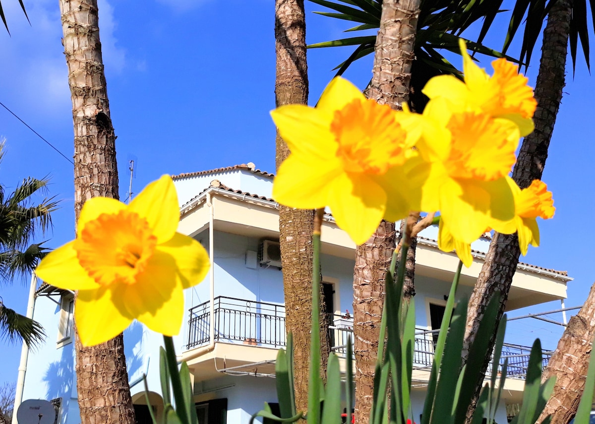 Mənzilimiz İon dənizinin nəfəskəsici mənzərəsi olan Bizans muzeyinin yanında, Korfu Köhnə Şəhərində yerləşir. Ev şəhərin tarixi veb saytının mərkəzində, dənizə doğru heyrətamiz mənzərəsi olan yerdə yerləşir. Bura Antavouniotissa Bizans muzeyinin yanında və şəhərin ən mühüm abidələri və muzeylərindən qısa yerimə məsafəsində yerləşir.