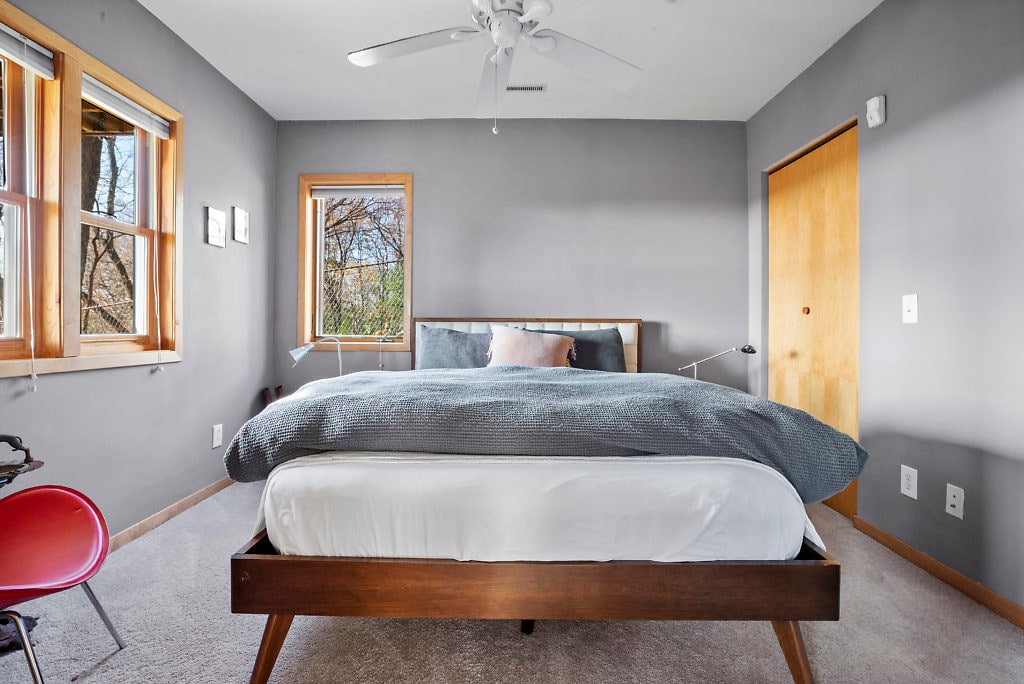 Tarixi Daytonun Bluff-da Sent Polun mərkəzindən bir qədər aralıda yerləşən bu günəşli, yuxarı səviyyəli dupleks hissəyə xoş gəlmisiniz. Rahat şəkildə, RiverCentre-yə 2 mil, CHS Field, St Paul Fermerlər Bazarına və ya Union Depot-a 1 mil məsafədə yerləşir, Metro Dövlət Universitetinə cəmi .4 mil və Mounds Park & Bruce Vento Nature Sanctuary-a bir neçə blok məsafədə yerləşir. Bu geniş, şəhər istirahəti üçün rahatladıcı iş sahələri, yoqa/fitnes otağı və qonaqlamanızı rahat etmək üçün qəhvə, çay və qəlyanaltılar təklif edir.