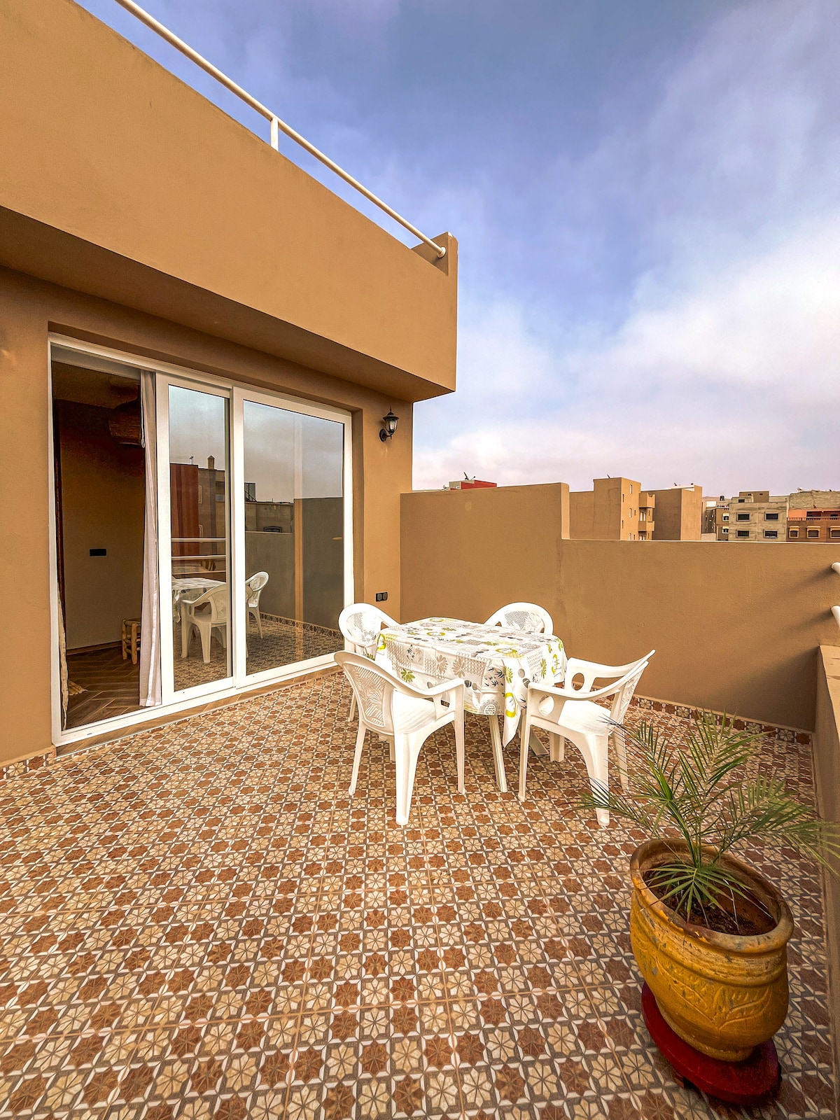 Aglouda dinc və təhlükəsiz çimərlikdə geniş, işıqlı və rahat mənzil. Agadir şəhərindən 95 km cənubda, Tiznitdən isə 15 km məsafədə yerləşir. Böyük terras okean və dağ mənzərələri təklif edir. Yaşayış yerində uşaqlar üçün 1 otaq və pulsuz parkinq daxil olmaqla 2 açıq üzgüçülük hovuzu var. Yaşayış yerindən çimərliyə giriş. Üstündə yerləşən 183 m2-lik mənzilə 3 yataq otağı, 2 vanna otağı, paltardəyişmə otağı, tam təchiz olunmuş mətbəx, qonaq və yemək otağı, Wi-Fi daxildir