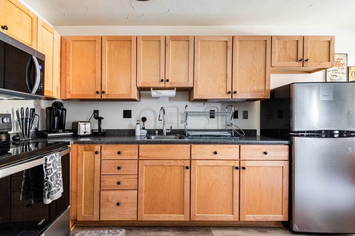 Mərkəzi Kinqs-Biçdə yerləşən bu "kiçik kabinə" Tahoe gölü sahillərindən cəmi bir blokdur. Hər iki dünyadan ən yaxşılarından zövq alın: çimərliyə, restoranlara, barlara, bazarlara və cığırlara qısa gəzinti, mənzərəli açıq məkanlara və yaxınlıqdakı istirahət mərkəzlərinə sürətli giriş. Əyləncəli və unikal incəsənətlə bəzədilmiş bu rahat istirahət məkanı bir günlük sərgüzəştdən sonra dincəlmək üçün idealdır. YENİ pəncərə A/C bloku yay aylarında sizi sərinlədir.