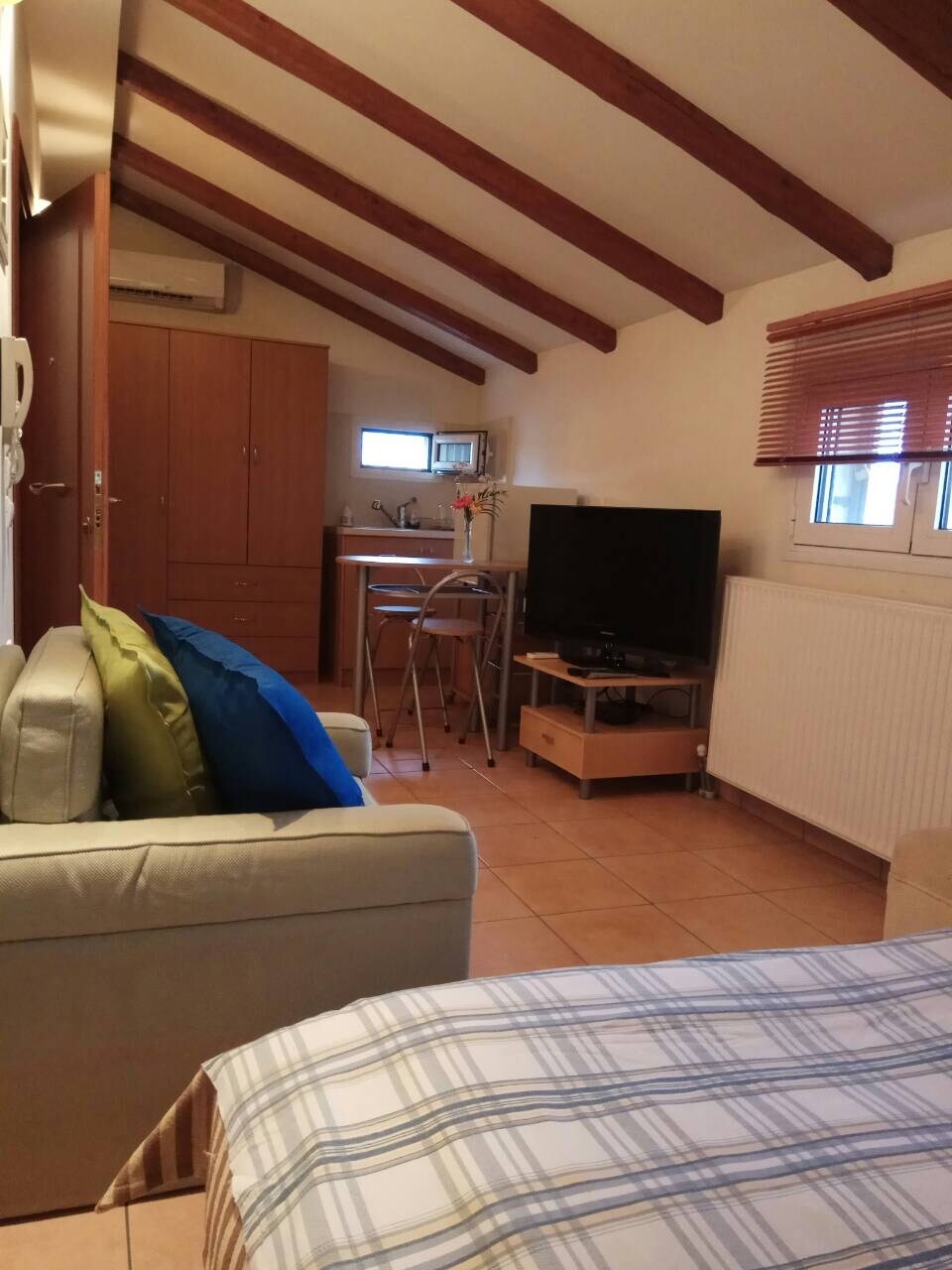 Recently renovated apartment 39 sq.m. on a two-story detached house. It can accommodate 2 adults and 2 small children. It consists of a bedroom with a double bed (1.70 x 2.10), a living room with a double sofa bed (1.60 x 1.10), a balcony overlooking the garden, a fully equipped kitchen and a bathroom. The space has autonomous heating with natural gas and a/c. Possibility to use BBQ, dining room on the porch and private parking space.