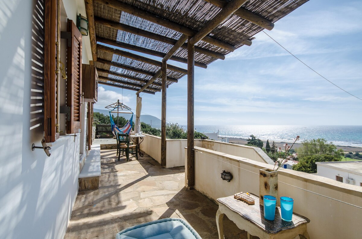 Villa Caterina is one house 50 m2 with spectacular view. It can accommodate 4 to 6 people. Entering by its private entrance to the enormous terrace of the villa that you enjoy your lunch/dinner by watching sunsets and sunrises. It is fully equipped has a spacious living room / sitting area that also has 2 single beds, a new kitchen with all appliances feels like home. There is also Master bedroom and a bathroom. It can be given with a guest room that can accommodate a 2 people.