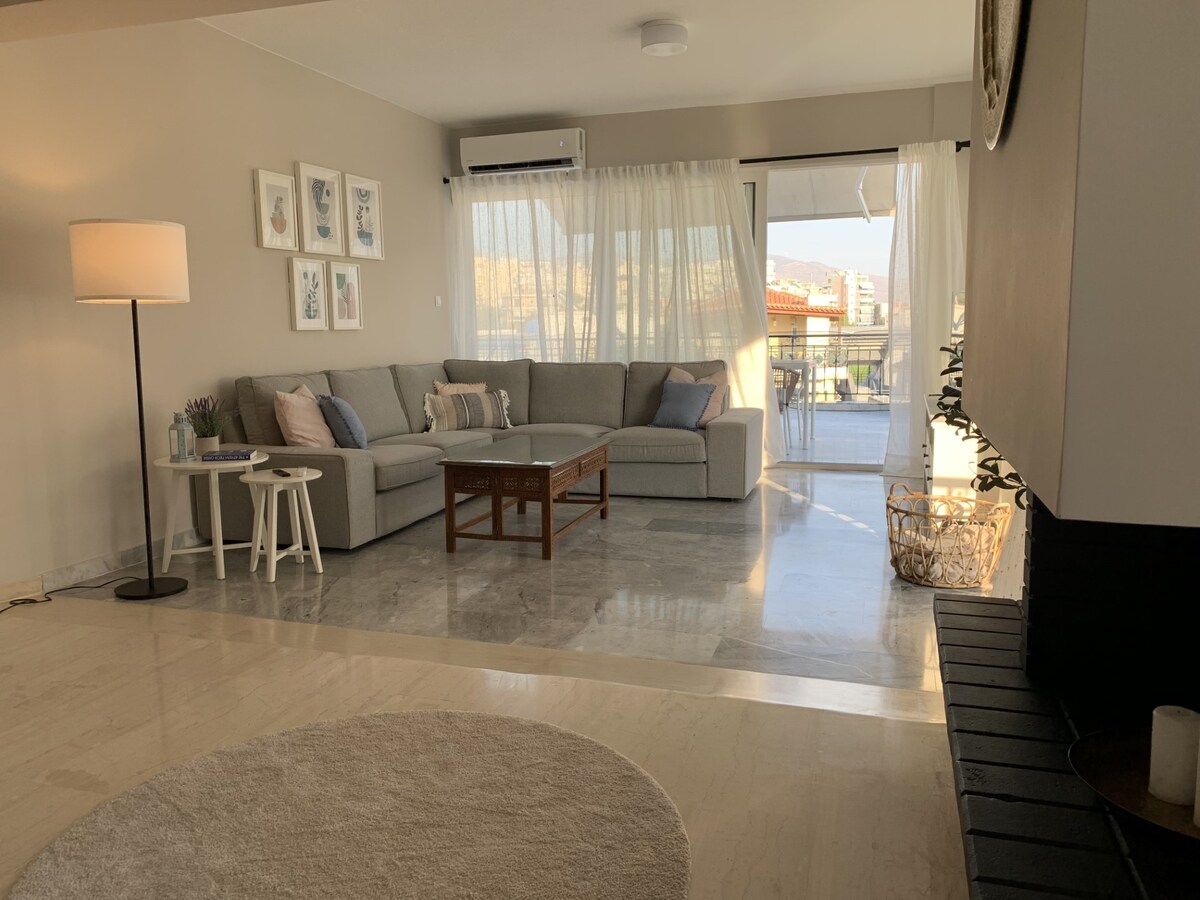 Cənubi Afinanın mərkəzində 40 kv.m. bağı olan, Afina Rivyerasının möhtəşəm çimərliyindən cəmi 2 km və Alimos Metro Stansiyasından 1300 metr məsafədə (10mins Akropol) müasir təmirli mənzil. Bu yaşayış yeri ailələr və cütlüklər üçün mükəmməl olan dinc qonşuluqda yerləşir. Tam təchiz olunmuş mətbəx, Netflix abunəsi olan Smart TV, yüksək sürətli WiFi, tam təchiz olunmuş vanna otağı, iki nəfərlik bir üstün çarpayı, iki nəfərlik divan və birnəfərlik çarpayı.