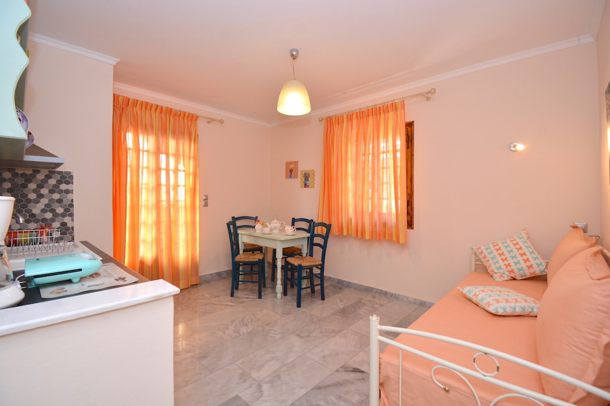 Korfuda Agios Gordios Beach-dən 100 m məsafədə yerləşən bu məkan haqqında 10 saylı birinci mərtəbə mənzil (50 kv. m) kiçik ailəvi kirayə mənzillərin bir hissəsidir və pulsuz Wi-Fi ilə özünəxas yaşayış yerləri təklif edir. Bura 2 yataq otağı, duş kabinəsi olan 1 böyük hamam otağı, 1 qonaq otağı və yaxşı təchiz olunmuş balaca mətbəxi olan mətbəx daxildir. O, həmçinin gözəl Korfu üslubunda bağa baxan mebelli verandaya açılır. O, qərb tərəfdə, təxminən 13 km məsafədə şəhərlə üzbəüz yerləşir.