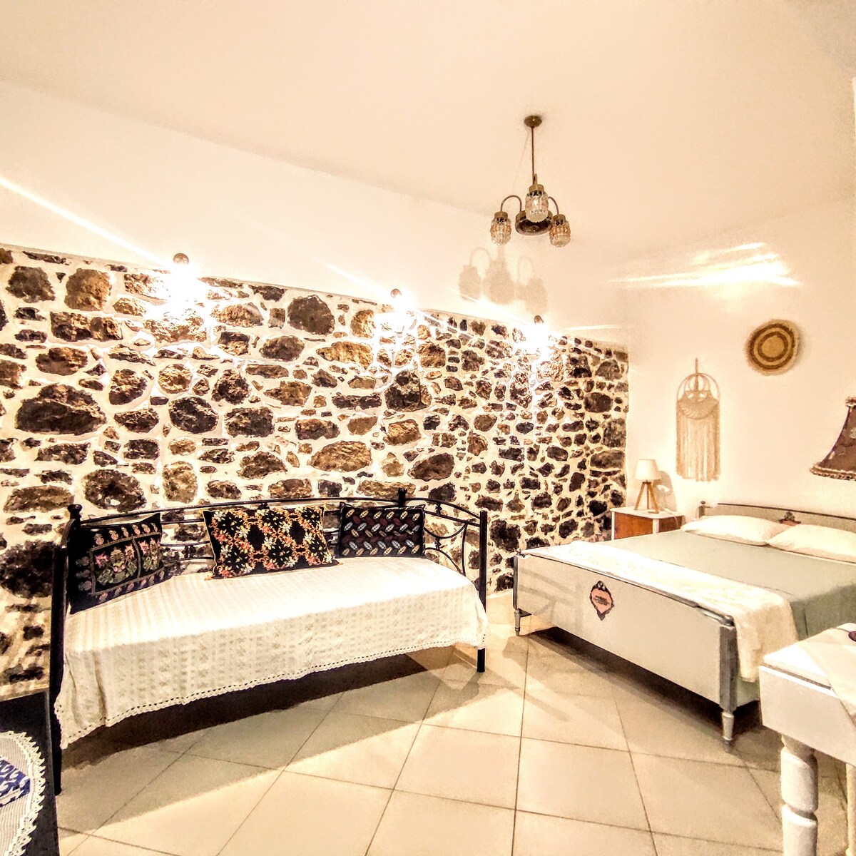 Ənənəvi kafelərin, orijinal meyxanaların, yerli dükanların, tarixi limanın və Mitilene qalasının yanındakı köhnə bazarda xüsusi qonaqlamadan həzz alın! Yenilənmiş loftumuzda müasir zəriflik və incəsənət retro estetikası bir araya gəlir. Burada köhnə bazarın ənənəvi daş döşənmiş küçələrinə baxan işıqlı, sakit və ab-hava dolu məkan təklif olunur. Hündür tavanlı məkanlar, müasir dizayn və unikal vintaj detallar rahatlıq və lüks hissi yaradır.