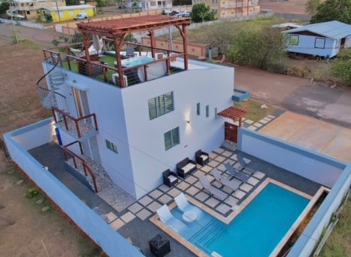 Bu unikal məkanın öz üslubu var. Cakuzili və okean mənzərəsi olan bütöv hovuz və dam örtüyündən zövq almalı olacaqsınız. 1-8 qonaq üçün. Bu mənzillər BQN Hava Limanından beş dəqiqəlik məsafədədir. Hava limanında onların avtomobil icarəsi şirkətləri var. Gəzməli yerlər, Cet Xizək icarəsi, Avarçəkmə Taxtası İcarəsi 10 dəq, Aguadilla və ya Rinconda dalğıclıq. Çimərliklərdən yeddi dəq. Restoranlara və səhər yeməyi ləzzətlərinə qədər 8 oyanma məsafəmiz var. San-Xuan şəhərindən 1 saat 45 dəq-dən 2 saata qədər işləyirik. Şənlik tədbirləri yoxdur!!