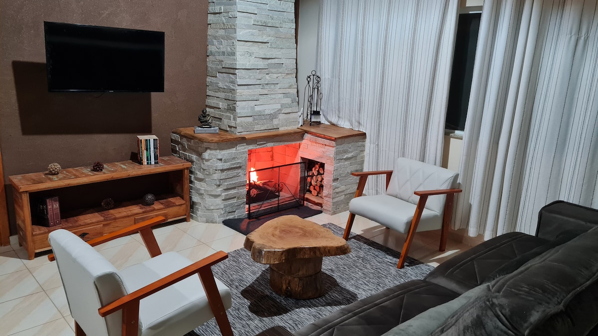 Resort & Residence of Águas de Santa Bárbara-da klublara və pizzaya yaxın imtiyazlı bir yerdə yerləşən bu gözəl və geniş evdə əla ailə günlərindən zövq alın. Rahatlığınız üçün qızdırılmış hovuzu, 3 yataq otağı (2 Suit), barbekü manqalı və daha çoxu olan ev. Cığırı, balıq gölü, idman fəaliyyətləri üçün hovuzu, qaçış cığırı və velosipedləri, hovuzu olan klublar, multi-idman meydançası, futbol meydançası, tennis kortu və çimərlik Tennisi olan kondominium istirahət zonası.