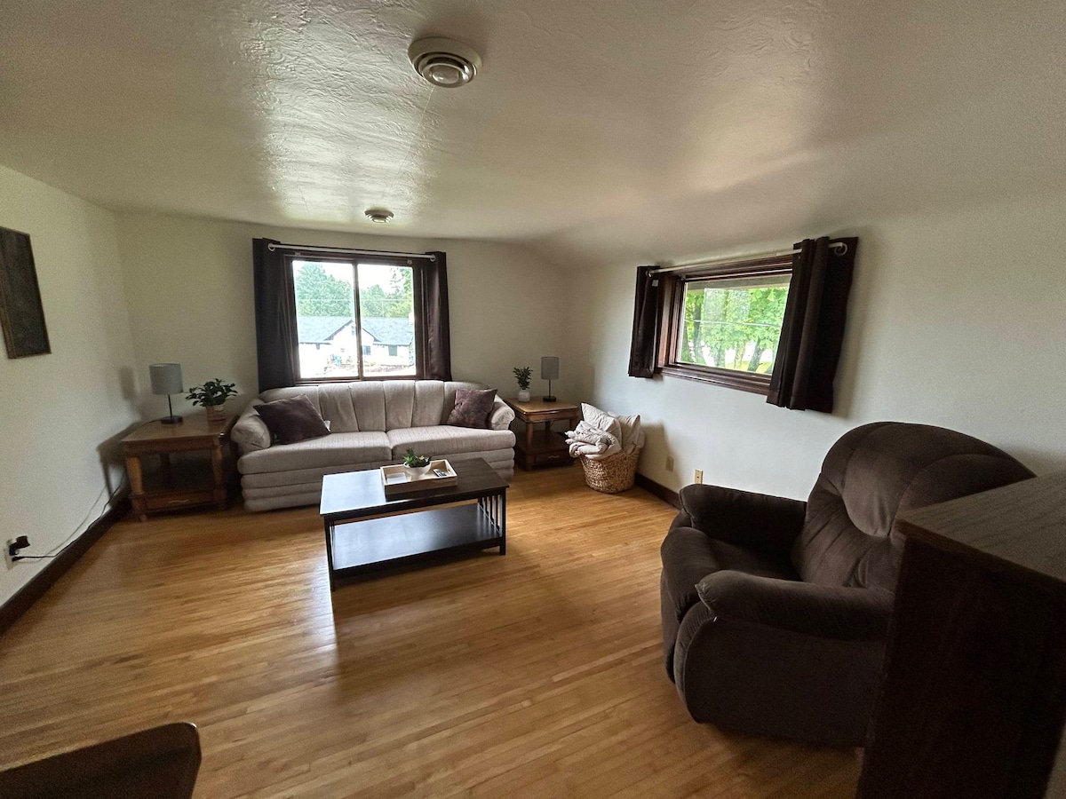 Təbii işığa malik böyük pəncərələr, tualet əşyaları olan ayrıca hamam otağı, paltaryuyan/qurudan maşını olan camaşırxana, divanı olan ayrıca ailə otağı, Hulu olan televizor, simsiz, mikrodalğalı soba, qəhvə maşını, şüşədə su və kiçik soyuducu olan ayrıca yan giriş. Yuxarı mərtəbədə yaşadığımız üçün bütün mərtəbəni özünüz seçmisiniz. Ev sakit bir ölkə bölümündə yerləşir. Maral, quşlar və digər canlılar gündəlik ziyarətçilərdir. Lambeau Sahəsinə, hava limanına və şəhərin mərkəzi Yaşıl Körfəzinə getmək asandır!