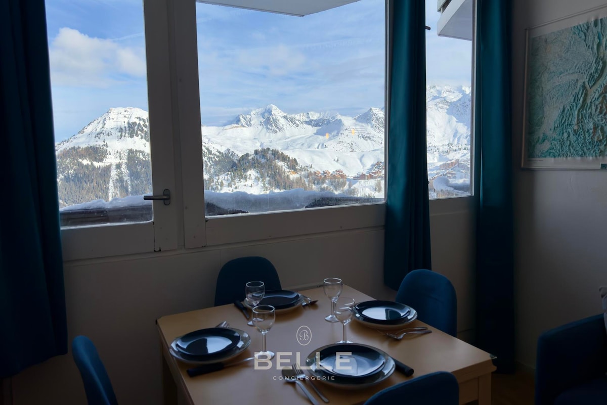 Aime-nin ortasında, sakit və baxımlı yaşayış yerinin üst mərtəbəsində yerləşən füsunkar studiya. Yaşayış yerinin qarşısında pulsuz parkinq Bir cütlük və ya tək şəxs üçün əladır. Ən emblematik kurortların ətəyində yerləşir. Plagne Montalbertdən -15 dəqiqə Plagne və ya Les Arcs-dan -30 dəqiqə Méribel/Courchevel-dən -40 dəqiqə