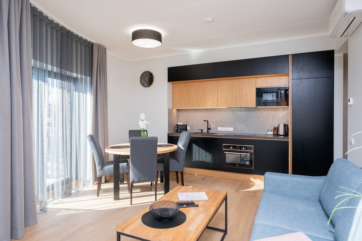 Experience Parisian charm in the heart of Tartu’s Old Town. This cozy, stylish loft on the ground floor offers a view of St. John’s Church, high ceilings, blackout curtains, a luxury bed, full kitchen, and Smart TV with Chromecast and premium cable. Enjoy free access to the gym, rooftop terrace, laundry, and cinema room (bookable). A cozy café downstairs adds to the charm. Perfect for both business and leisure stays.