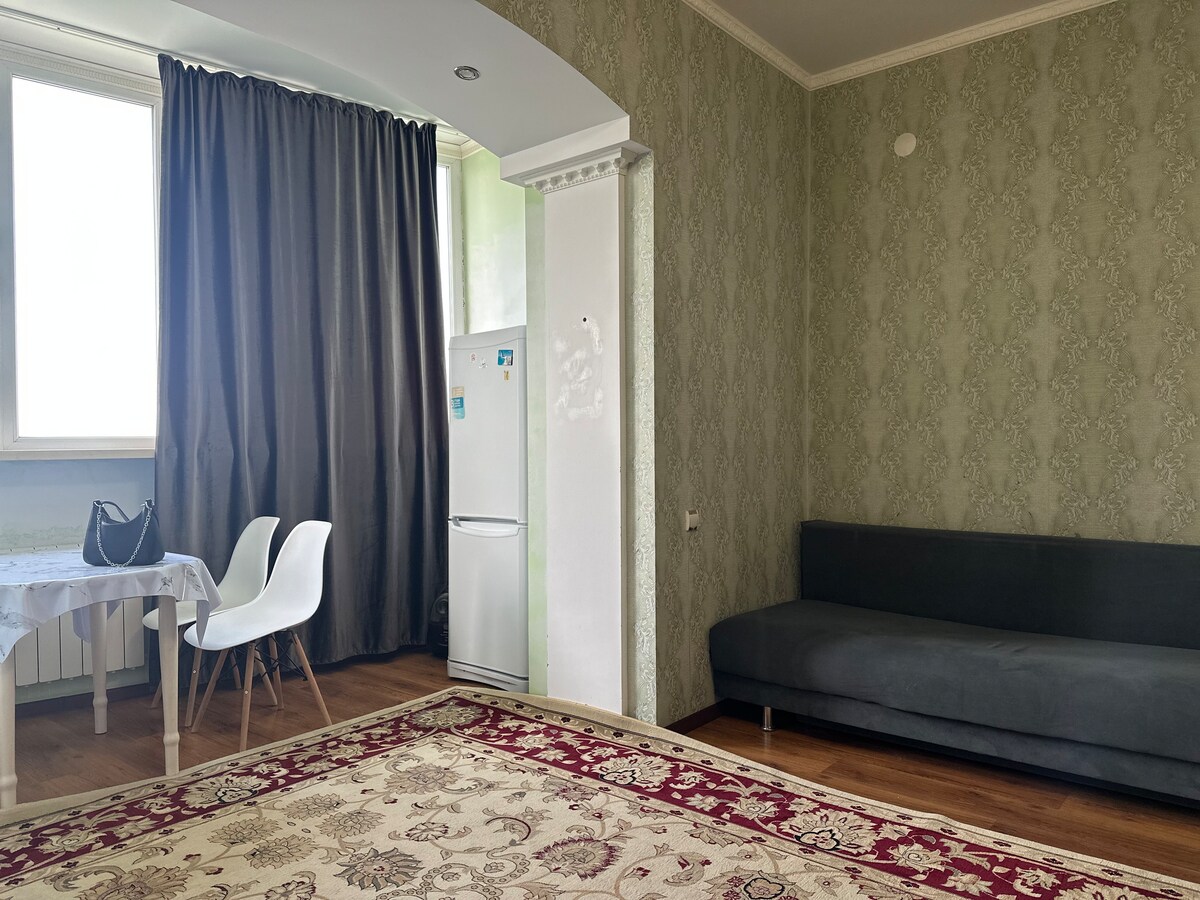 Şəhərin mərkəzində gözəl qonaqlamadan zövq alın. Mənzil işıqlıdır,təmizdir,rahatdır, çox istidir. Təmirdən sonra Rahatlığınız üçün bütün cihazlar təmin edilir. Mətbəx ləvazimatları,süfrə ləvazimatları. Yataq dəsti, dəsmal, fen, birdəfəlik gigiyena elementlərini (duş geli, şampun, diş fırçası) təmizləyin Yaxınlıqda Kuanyş klinikası,restoranlar, kafelər, Hiper Anvar, Alaçıq Parkı, Əbədi Alov, banklar, valyuta mübadiləsi, avtomobil yuma, 24 saat mağazalar var. A/C Atlant, Tsonq. Hər şey qısa məsafədədir.