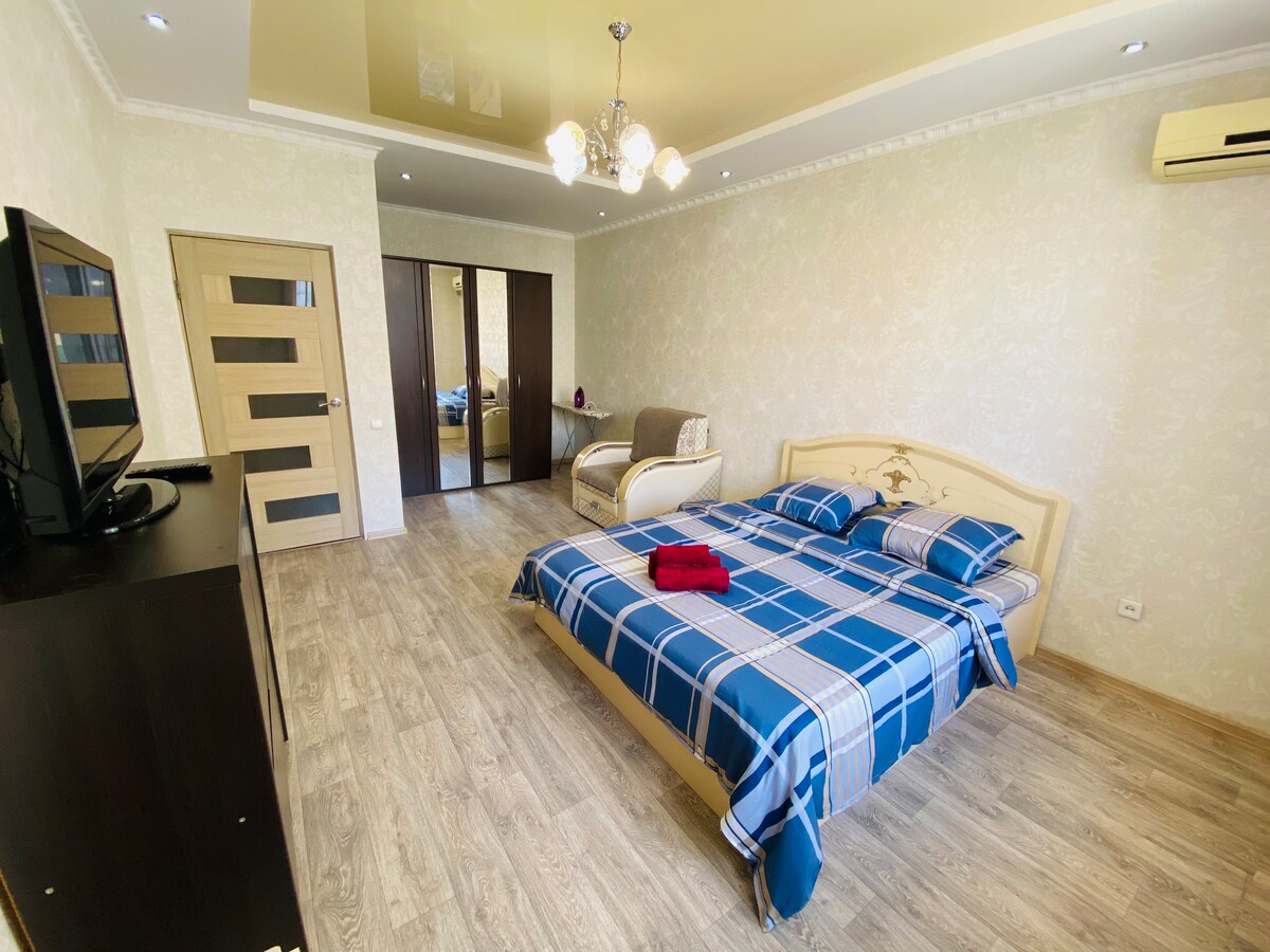 Mənzildə rahat qonaqlama və istirahət üçün lazım olan hər şey var. Özünüzü bizimlə evinizdəki kimi hiss edəcəksiniz! saat 14:00 -dan etibarən giriş edin 12:00 -a qədər çıxış edin Wi-Fi AĞILLI TV abunəliyi: MEGOGO + IVI Bütün lazımi cihazlar: elektrik sobası, mikrodalğalı soba, elektrik çaydan, paltaryuyan maşın, ütü. Qarlı ağ döşəkağılar, dəsmallar, başmaqlar. 24/7 giriş üçün quraşdırılmış ağıllı kilid. Çox sayda görməli yerlərə və müxtəlif yerlərə piyada məsafə.