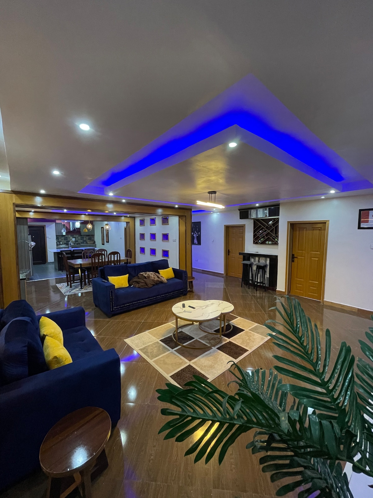 Hava limanından əsas binaya və həmçinin alaqbakadan əsas binaya qədər olan əsas binaya qədər çox da uzaqda olmayan depozitar mühitində yaxşı tikilmiş 2bed otaqlı otel xidmətləri təklif edən mənzillər: Geniş parkinq yeri Qonaq otağı və otaqlar üçün ventilyatorlar üçün mərkəzi şərait Gözləmə generatoru Kondusive mühiti 50 düymlük ağıllı televizor Müasir divan Qaz və soba peçi Hava limanından/digərlərindən avtomobil almaq üçün xüsusi xidmət sorğusu