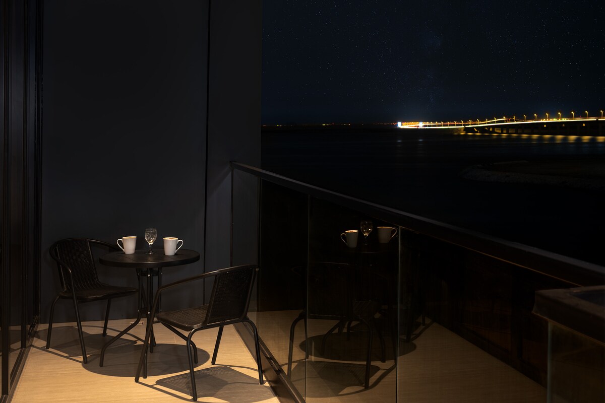 Tam və birbaşa dəniz mənzərəsi olan lüks mənzil, sizə müstəsna qonaqlama təcrübəsi bəxş edən geniş eyvanı ilə. Burada 3 rahat yataq otağı, həmçinin xidmətçi otağı, geniş istirahət otağı, tam təchiz olunmuş mətbəx, bilyard otağı və 3 hamam otağı var. Bəhreyn Körpüsü və Əl-Şubaili Kompleksindən 1 dəqiqəlik məsafədə, Xobar Sahilyolundan isə 3 dəqiqəlik məsafədə xüsusi mövqe. Ailələr və rahatlıq, məxfilik və unudulmaz dəniz mənzərəsi ilə xidmətlərə yaxınlıq axtaranlar üçün mükəmməldir 🌊