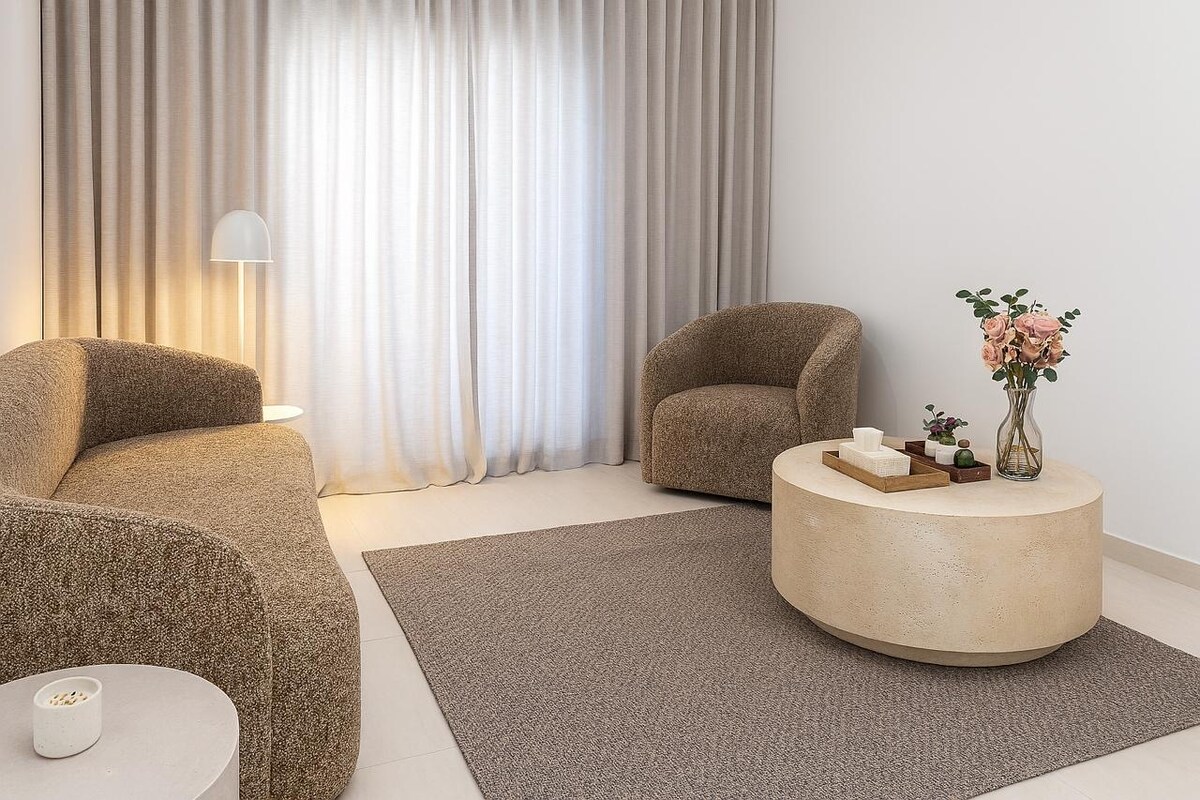 Əl-Xobar şəhərində rahat mənzildə fərqli bir qonaqlama kəşf edin. Mənzil bir neçə xüsusiyyətə malikdir: 1. Ağıllı qapı kilidindən ağıllı və təhlükəsiz giriş. 2. Mənzərəli gözəl balkon. 3. Qəhvə maşını, mikrodalğalı soba və kiçik soyuducu ilə təchiz olunmuş qəhvə guşəsi. 4. 4K ağıllı ekran. 5. Sürətli 5G internet bağlantısı. 1. Bəhreyn Körpüsü - 5 dəqiqə ərzində. 2. Rəşid Mall - 10 dəqiqə. 3. Sahilyanı ərazi - 5 dəqiqə.