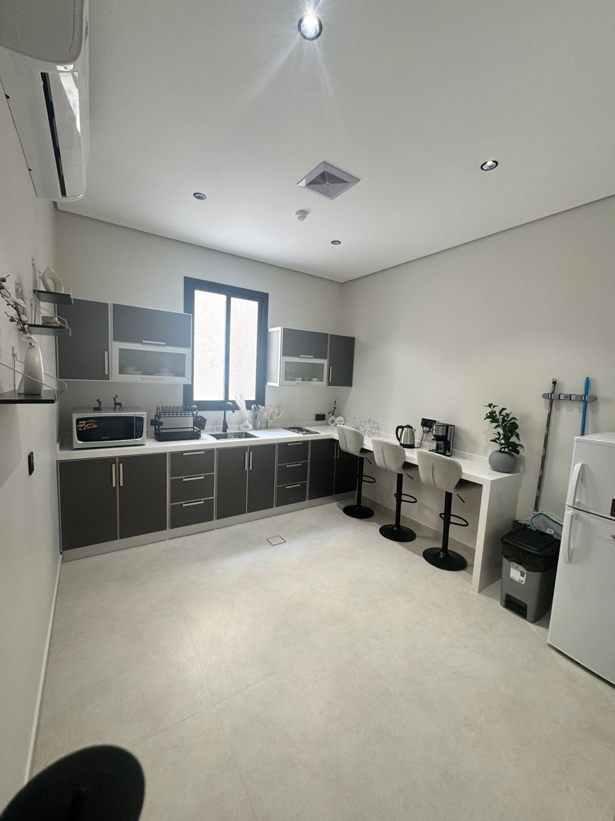 Bütün qrup bu geniş və unikal elanla rahat olacaq. Məkan özəldir və yüksək səviyyədədir Məkan sizin üçün hazırdır Böyük sahə salonu Böyük bir televizor ekranı ilə təchiz olunub 🎥 Rahat divan 🛋️, qab-qacaq, yemək bişirmə avadanlıqları və ədviyyatlar 🧑🍳 və ütü cihazı və camaşır Əlavə sorğularınızdan məmnunuq 🤍
