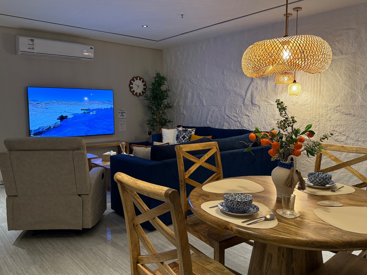 Spacious 3 Bedroom Family Apartment (Sleeps 8) Near King Fahad Causeway. 3min to Causeway | 7min to Al-Corniche | 45min to Airport Features: 75” TV with Netflix, Prime, Shahid, OSN, Disney+, Apple TV Full kitchen, snacks, board games. Stunning views, male/female gyms, kids’ play area. Essentials included—linens, toiletries, washer and dryer. Everything you need is here—just pack your bags! Book now—limited availability! Contact us today to secure your stress-free stay!