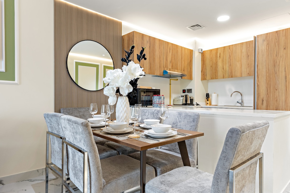 Müasir rahatlığın sakit sahilyanı yaşayışla qovuşduğu Yas Su Kənarında qonaqlayın. Bu zərif mənzildə taxta tirləri, böyük ağıllı televizoru olan rahat salon, dəbli səhər yeməyi barı və Yas adasına baxan balkon var. Düşünülmüş təfərrüatlar, xüsusi rəflər və yumşaq təbii tonlar onu Yas Marina, Ferrari World və Yas Mall-a həm istirahət, həm də yaxınlıq axtaran ailələr, cütlüklər və ya işgüzar səyahətçilər üçün mükəmməl edir.