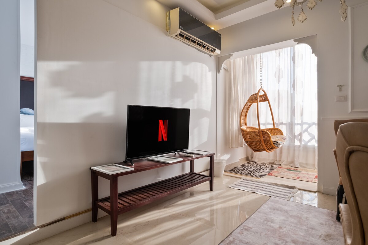 The listed price includes our Standard Package, covering electricity & high-speed Wi-Fi, prepared bed linen (no replacement), towels provided once only, emergency maintenance, a Smart TV with apps installed (no paid subscriptions), and spare key support. A Premium Package is available as a paid upgrade, including housekeeping on demand, premium channels (Netflix, beIN Sports, paid channels), full maintenance, 24/7 premium support, linen & towel replacement, and amenities refill.