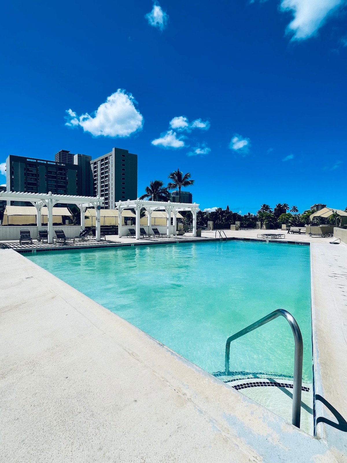 Waikiki-nin başlanğıcında yeni təmir edilmiş studiya. Mərkəzdə və Waikiki çimərliklərinə, restoranlara, Ala Moana Mall-a və Ala Moana Beach Parkına piyada məsafədə yerləşir. Məşhur Brilyant Baş yürüyüşünə və Beynəlxalq Bazar Yerinə yaxındır. İmkanlara hovuz, cakuzi və ərazidə sikkə camaşırxanası daxildir. Gündə 50 $ (yalnız nağd pul) üçün parkinq mümkündür Nəzərə alın ki, su ayın 1-ci çalarlarını səhər saat 11-dən axşam saat 3-ə qədər söndürür.