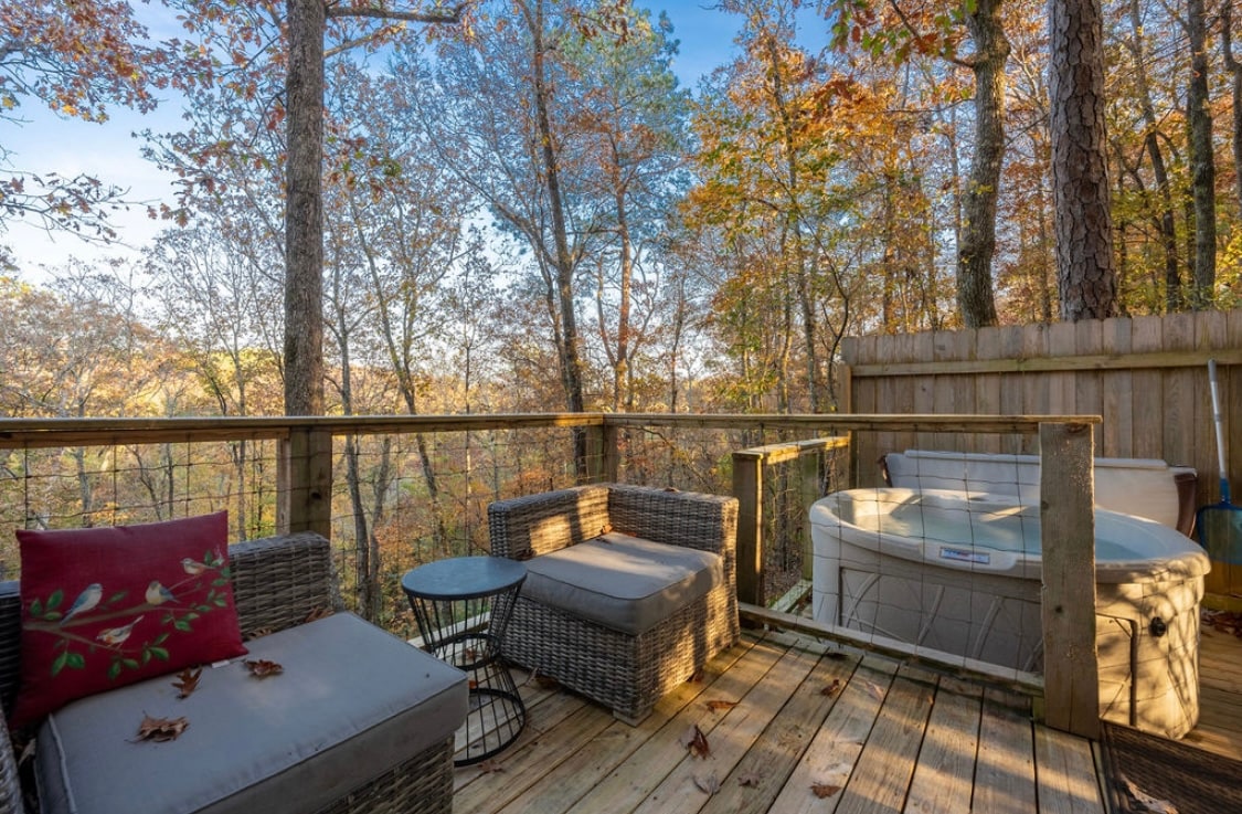 Bu romantik, yaddaqalan yerdə keçirdiyiniz vaxtı unutmayacaqsınız. Baş Ladiqa cığırına bitişik 4 hektarlıq tənhalıqdan və Pinhoti cığırına qədər məsafə qət etməkdən zövq alın. Əsas səviyyədə tam təyin edilmiş mətbəx, yarım vanna və şpal divanı var. Spiral pilləkənləri açıq şüaları və köntöy qalay tavanı olan əsas yataq otağına qalxın. 3 göyərtədən zövq alın və mənzərədən zövq alın, yaxud da yellənən çarpayıda və ya hottubda dincəlin və Little Terrapin Creek-in səslərini dinləyin.