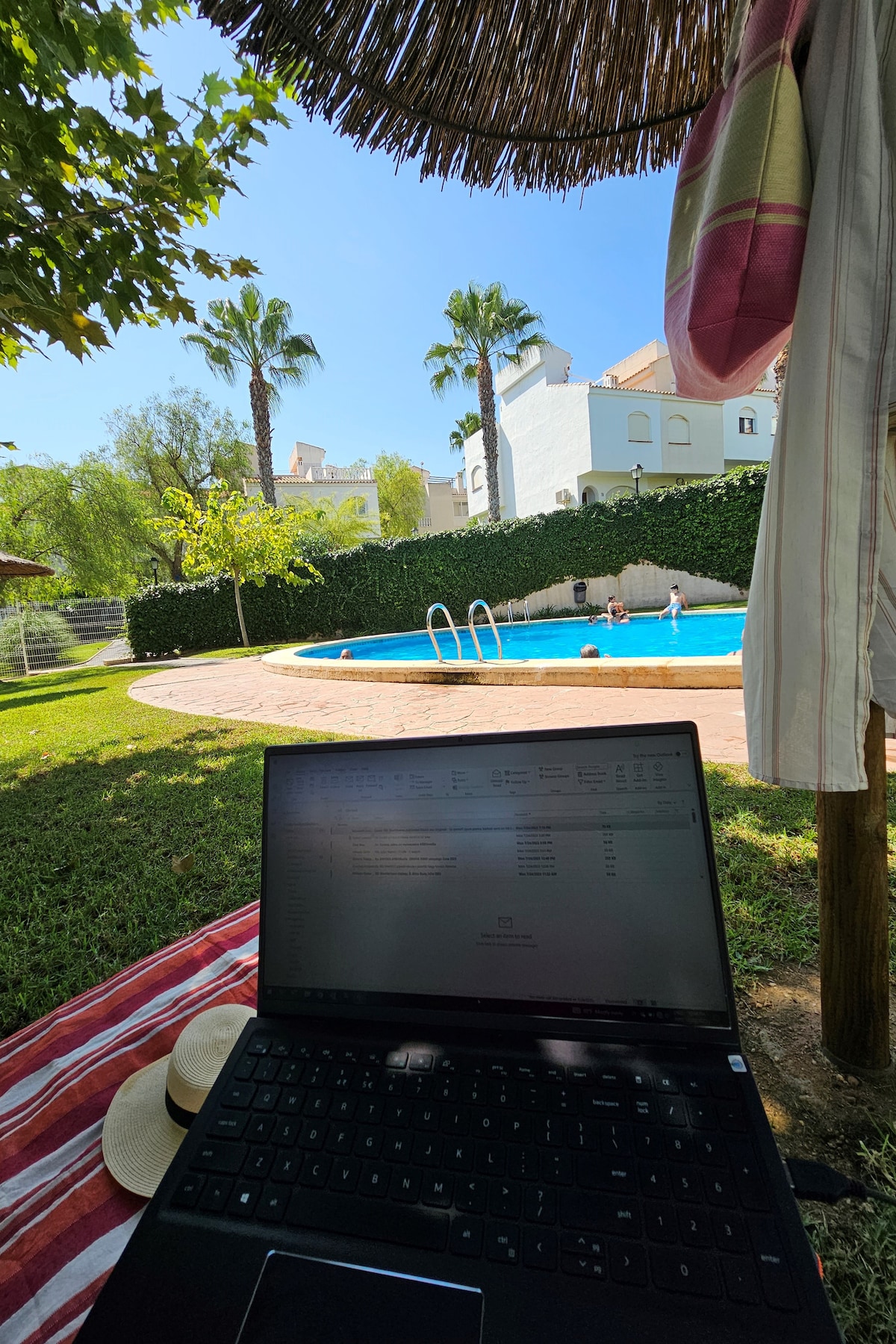 Çox sakit bir ərazidə rahat banqalo (künc), pilləkən yoxdur, çimərlikdən iki blok məsafədədir. Böyük terras. Hovuz. Hamısında güclü pərəstişkarları olan üç otaq, yayı xoş keçirmək üçün çox xoşdur. Terrasdan hovuza birbaşa giriş. Ailə kimi zövq alın, xoş mühitdə çimərlik məkanınızdan zövq alın. 300 m-ə qədər tramvay və 1 dəqiqədən az avtobus. Eyni ərazidə supermarketlər, restoranlar və sağlamlıq mərkəzləri.