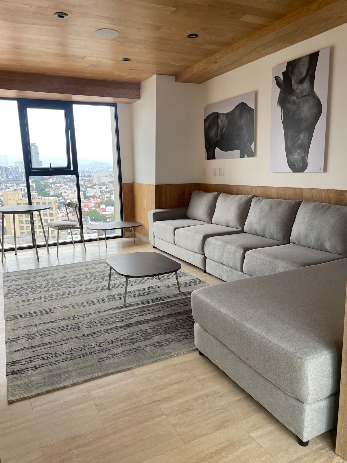 This one of a kind and cozy pent-house is located inside one of the most emblematic developments built in La Condesa neighborhood. Its architecture is a contemporary version of Art Deco. A style that defines La Condesa. It is located in a beautiful, tree-lined area. The atmosphere is very family-oriented, with young and vibrant people. The surroundings invite us to step out, walk, relax and discover new experiences.