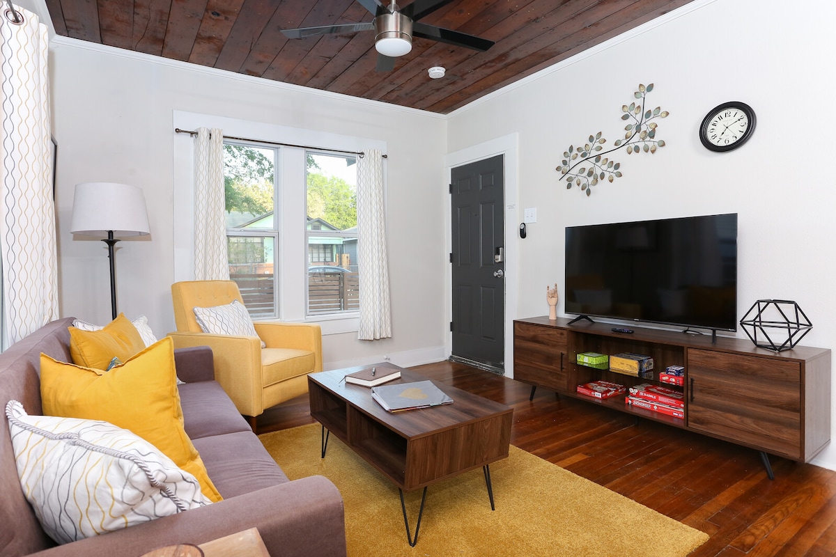 3 YATAQ OTAĞI | 2 HAMAM • Pulsuz Parklanma • Alamodome, River Walk və Alamo piyada məsafəsində San-Antonioda qonaqlamanızı şəhərin ən canlı məhəllələrindən birində yerləşən, tam təmir edilmiş 1900-cü illərin Viktoriya üslublu evi olan The Urban Chalet ilə yüksəldin. Müasir imkanlardan, dizayner detallardan və şəhərin əsas görməli yerlərinə misilsiz giriş imkanından zövq alın — hamısı piyada məsafədə və ya qısa bir gəzinti məsafəsində. İş, ailə və ya əyləncəli bir tətil üçün gəlsəniz də, yüksək səviyyəli qonaqlamanın lüksünü evin səmimi rahatlığı ilə birləşdiririk.