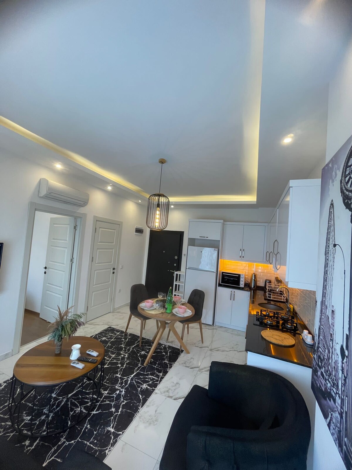 🏡 Daire Özellikleri • 1 yatak odası + 1 salon • Tam donanımlı mutfak • Klima • Wi-Fi • Balkon 📍 Konum Alanya kestel 📌 Ev Kuralları Lütfen tüm misafirlerimizin konforu için aşağıdaki kurallara dikkat ediniz: • 🚭 Daire içerisinde sigara içmek yasaktır. (Balkon kullanılabilir.) • 🔇 Gece 23:00’ten sonra sessizlik kuralına uyulması gerekmektedir. • 👥 Daire sadece rezervasyonda belirtilen kişi sayısı kadar misafir kabul eder. • 🧹 Eşyaların temiz ve düzenli kullanılması rica olunur.
