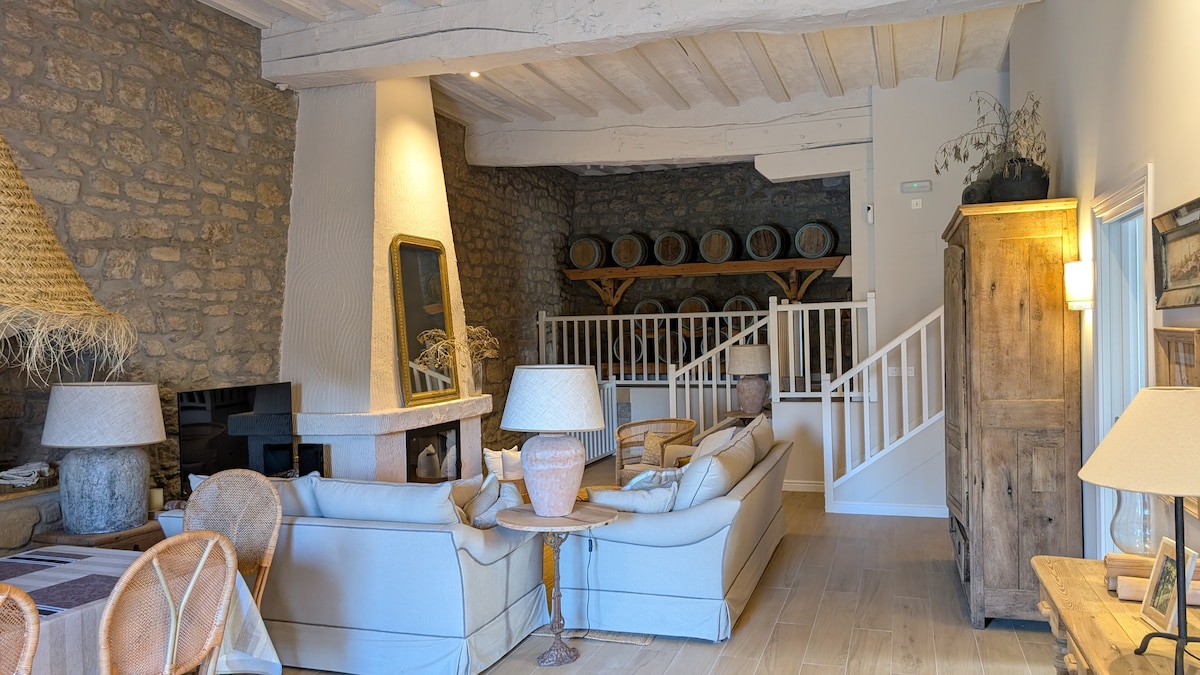 Casa rural de piedra ubicada en Rodezno a 6 km. de Haro, dispone de seis habitaciones dobles, dos suites en la buhardilla con bañera o jacuzzi y terraza cubierta, tres en la primera planta con balcón o terraza y una en planta baja adaptada para personas con movilidad reducida. En la planta baja dispone de un salón comedor con chimenea, librería, aseo y un patio con mobiliario de jardín. En el caso de alquiler completo se puede disponer de la cocina totalmente equipada.