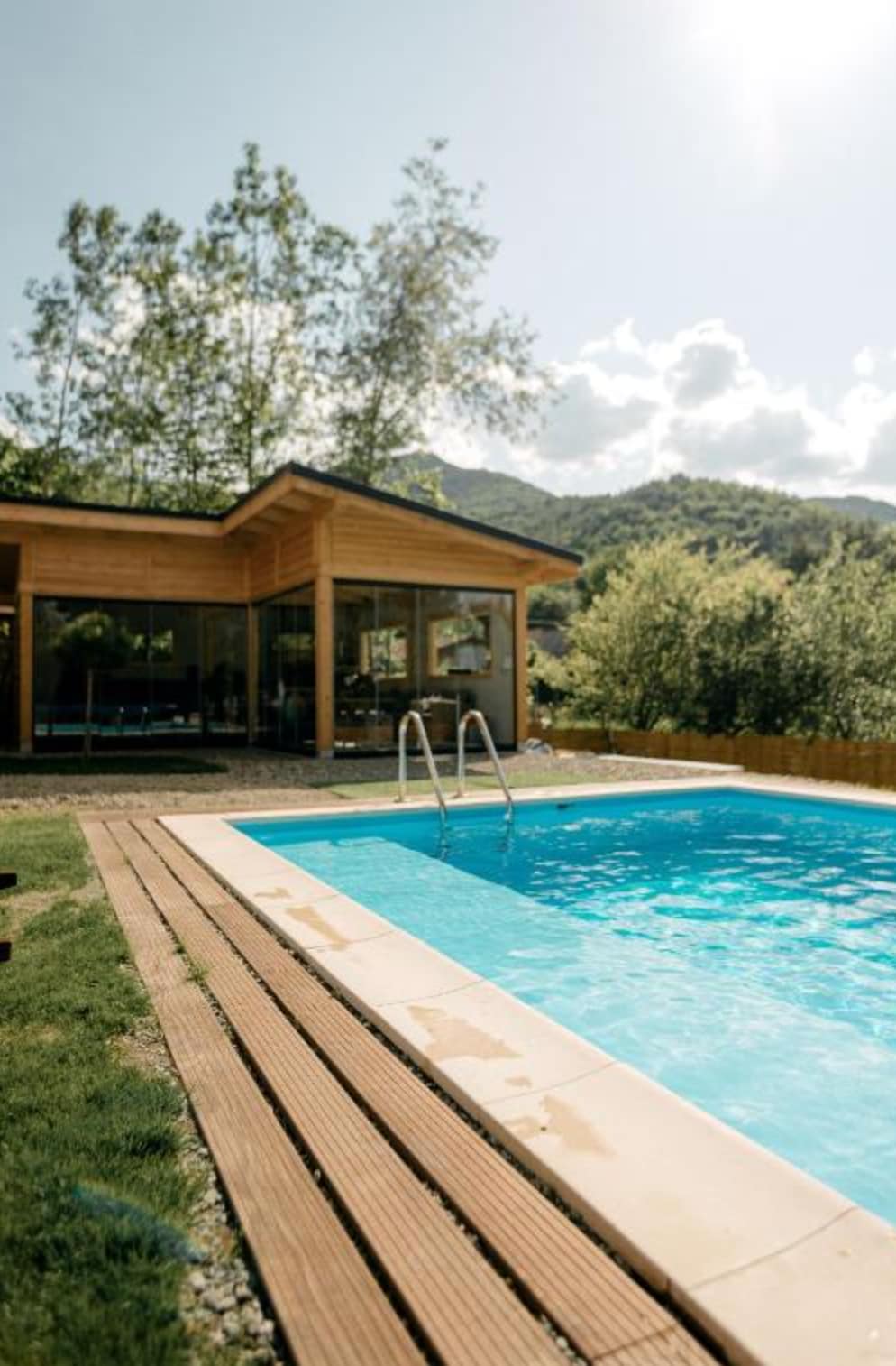 Holiday house of welcoming family in the middle of nature, in a very nice area where you can practice activities like hiking, off road trips, close to thermal spa resort, good food made of natural products. Perfect for groups up to 10. The house has 3 bedrooms with double bed, 1 bedroom with 2 single beds, 1 living room with couch and big dining room, 2 bathrooms, 2 open terraces, big garden with pool and barbecue, fully equipped outdoor kitchen. Morning coffee, tea and pastry included!