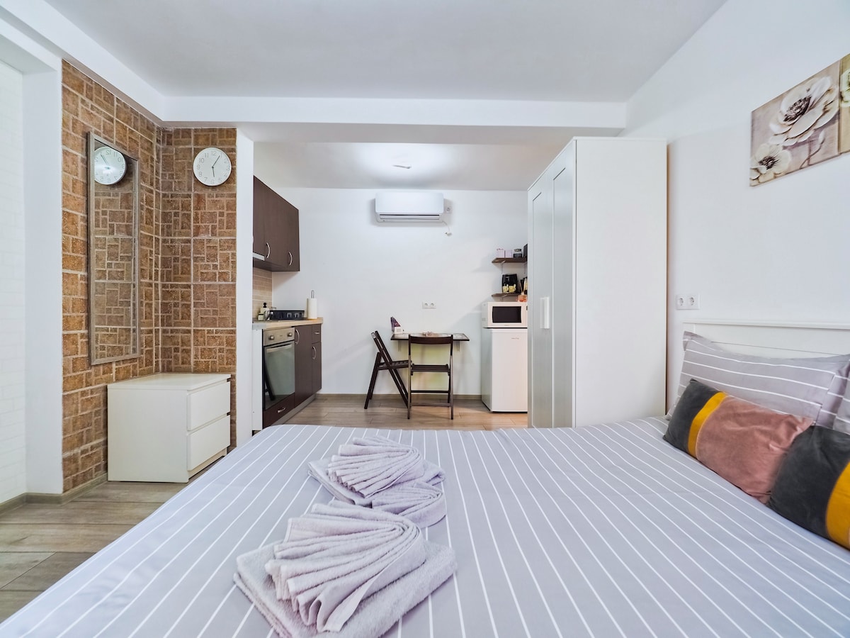 Discover your modern studio retreat in Sibiu! Perfect for a single person or a couple , this ground-floor apartment offers a quiet escape just a 20 minute walk from the historic center. Enjoy A/C, high-speed internet, a fully equipped kitchen, and a smart TV. Experience the perfect blend of comfort and convenience in a peaceful residential neighbourhood.