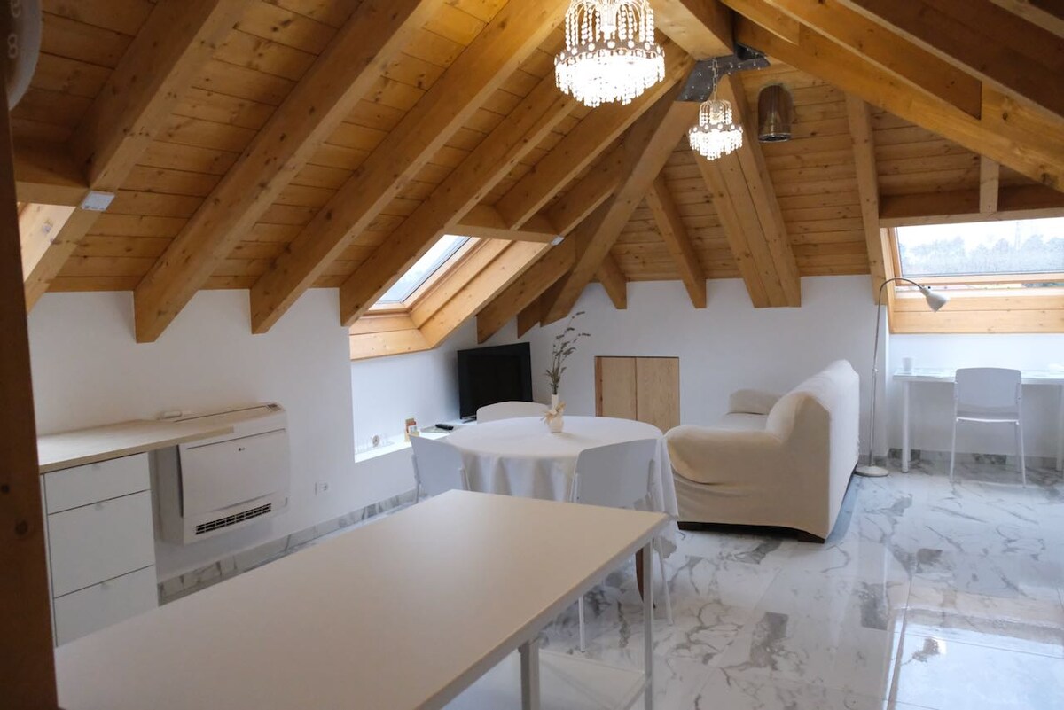 Fasilə verin və bu rahat vahədə bərpa edin..... bütün komfortlar və sakitliklə təchiz edilmiş yeni təmir edilmiş çardaq açıq məkan. Atfitta Bianka Koqoleto Bələdiyyəsinin Sciarboraska şəhərinin hamletində yerləşir. Koqoletonun mərkəzindən və dənizdən təxminən 5 km məsafədə yerləşirik. Mərkəzə avtomobillə təxminən 5 dəqiqəyə və ya ictimai nəqliyyatla getmək olar, avtobus dayanacağı binanın düz qarşısında yerləşir.