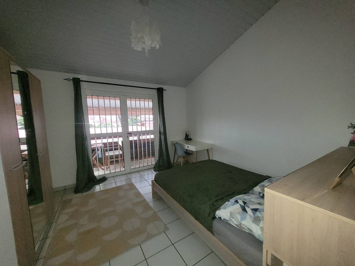 Şəhər mərkəzindən və üzgüçülük üçün "Maroni" çayından 3 dəqiqəlik məsafədə qonaqlamanız üçün lazımi imkanlara malik 18 m² sahəsi olan kiçik studiya çox xoşdur. Avtomobiliniz birbaşa qapınızın qarşısında, əmlakın daxilində təhlükəsiz olacaq. Çörək və şirniyyatlarınızı almaq üçün səhər tezdən qovucu və quşların izdihamı, eləcə də səhər saat 6:00 -dan 19:00 -a qədər gələn çörəkçi tərəfindən oyanacaqsınız.